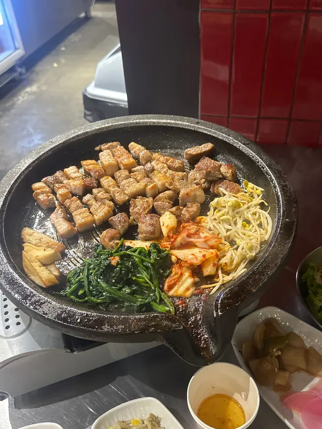 招牌烤牛排骨肉質厚實、鮮嫩多汁,五花肉烤得焦香酥脆且不膩,搭配特製醬料和生菜堪稱絕配,水冷面、黃油炒飯等主食也各具風味,解膩又飽腹,店員會主動幫忙烤肉,火候掌控精準。