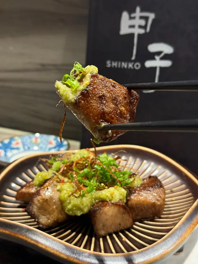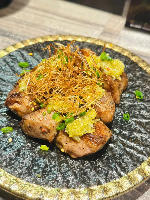我同老友向來都鍾意食牛脷,所以,見到呢道牛舌芯,當然要會一會佢。啲牛舌芯好夠厚身,燒得恰到好處,外層微焦香口,咬落軟軟又有份柔韌彈牙感,味道帶有牛舌獨特嘅香羶味。因為本身灑咗鹽嚟燒,所以,再沾岩鹽或柚子胡椒就有啲偏鹹,個人覺得灑啲檸汁,再黐啲蔥花食就最正。