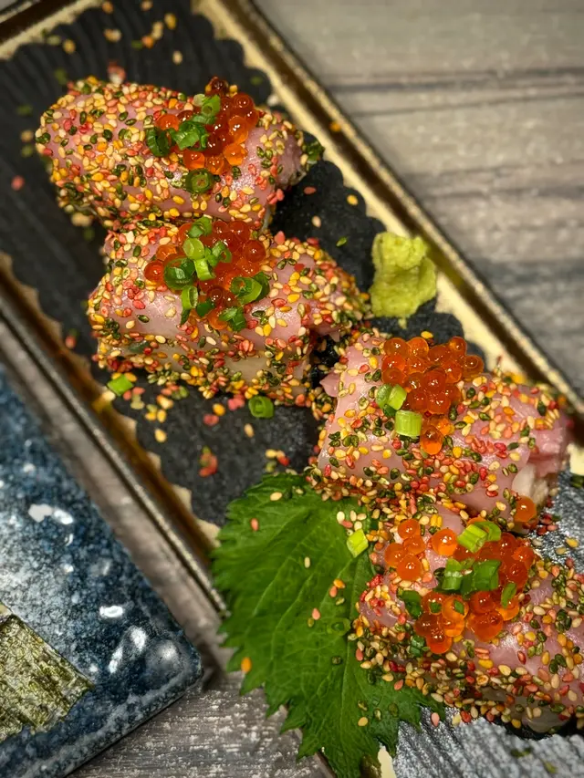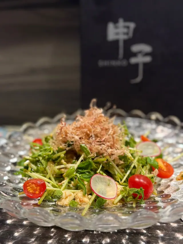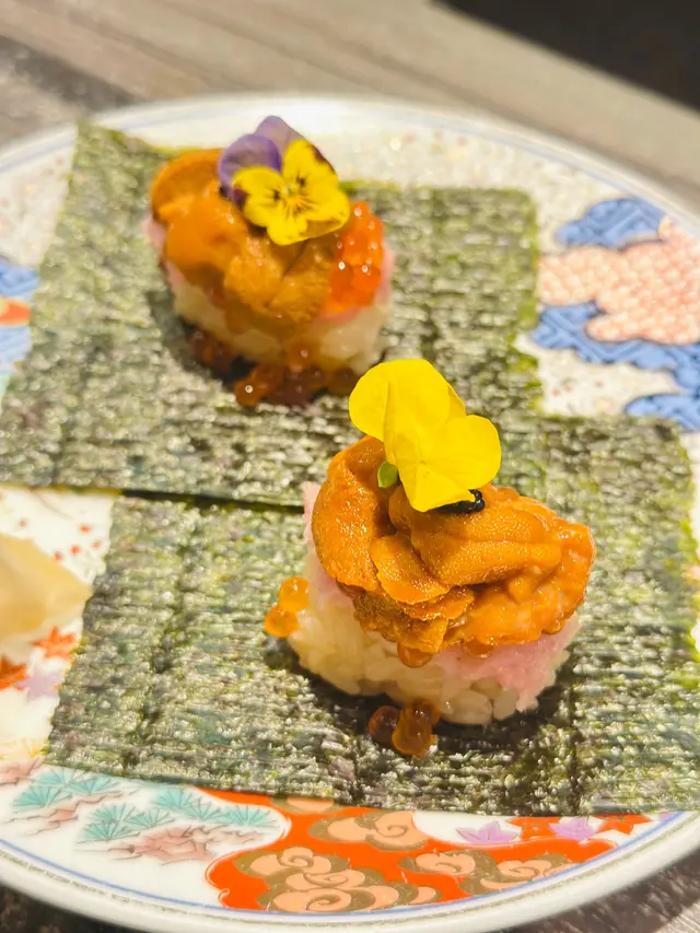 先試試一道前菜類,加咗啲黑魚籽同花串,賣相非常精緻。將牡丹蝦刴成細碎,但又未至於成蓉,保留番牡丹蝦嘅黏糯口感,而且,非常鮮甜,加埋混入蟹籽同松子仁,再配埋脆到好似薯片咁嘅鱈魚片,味道與口感嘅層次都十分豐富,好有驚喜。