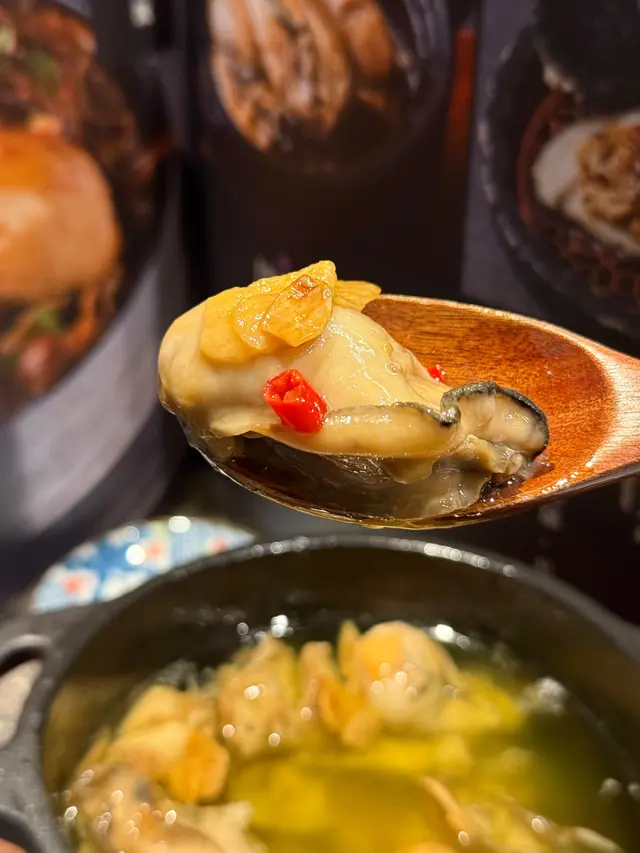 天氣凍咗,食啲熱焫焫嘢就最窩心,所以,試咗呢款蠔鍋,因為用咗油浸方式煮,啲蠔自然夠滋潤,但難得入口又唔覺好油;再者,啲蠔超大隻,非常肥美飽滿,蠔味十足,夠晒鮮美,而且份量唔少,仲加埋唔少蒜片去煮,又有唔少菇菌在內,好食又豐富。