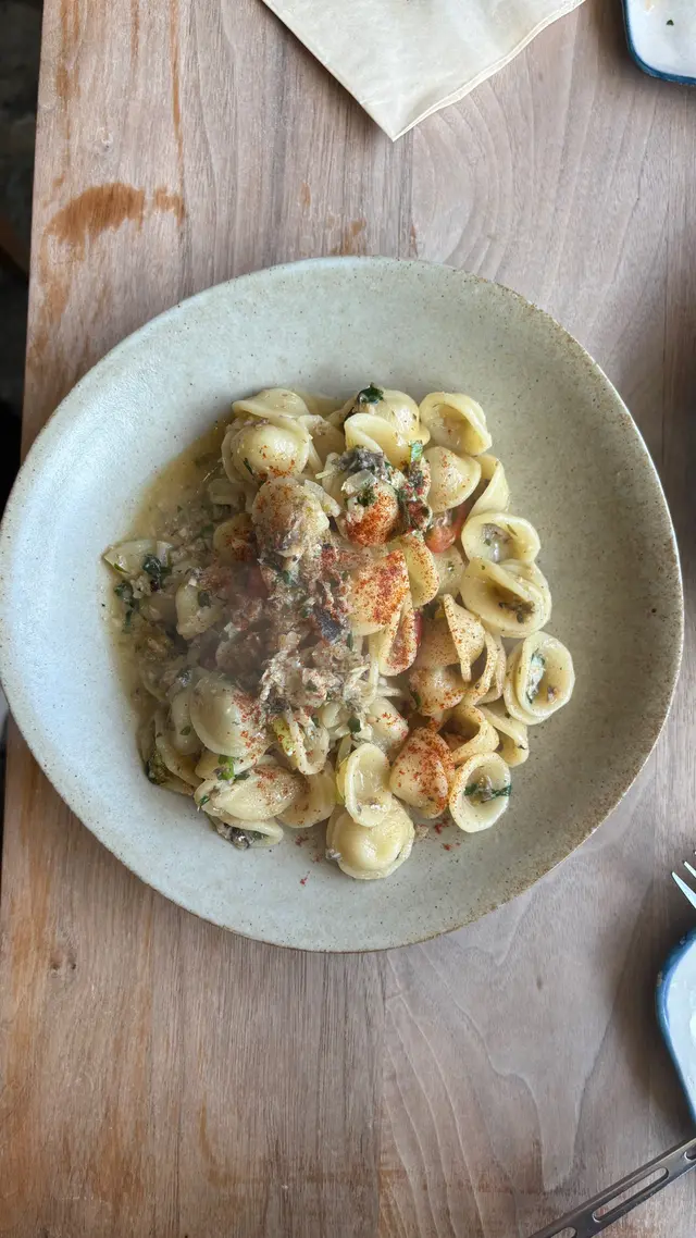 是日平日約咗朋友去 留下 cafe 經過好多次都見好多人或者冇時間今日終於都試到喇!🌹間Cafe座位不多大概10零個座位 不過平日你就會感到chill同埋舒服,入面嘅佈置裝修都令人心情放鬆,可以同朋友慢慢傾偈食吓嘢我朋友點咗自家糖漬檸檬梳打 入口非常清爽 自家糖漬檸檬帶清香檸檬味而不會太甜而我就點咗椰子蜜糖燕麥奶 入口很香滑 帶濃濃嘅椰子味連埋面頭嘅桂花吞下後隨隨口腔充滿香甜感覺 秋冬飲呢杯真係滋味上心頭本地蟶子全蛋闊條麵 呢個個人認為真係要必點 一上枱超級香 闊條麵非常香蛋味 煙煙韌韌 醬汁鮮香 蟶子也很新鮮 煮得啱啱好爽口彈牙 面入邊帶點sun dried tomato,令食食吓蛋麵帶點酸香驚喜 而anchovy 同埋白酒幫到成個面鹹鮮升華 正再來一個西班牙沙甸魚耳朵粉 幫我調味都不會太複雜用酸豆Chilli, parsley,capers,tomato簡單調味 因為西班牙沙甸魚已經夠晒鮮香 其中酸豆的酸味能讓魚汁更醒胃 而耳朵粉每一粒都充滿着醬汁 而且質地都煮到al dente 效果 very nice🌹…查看更多
