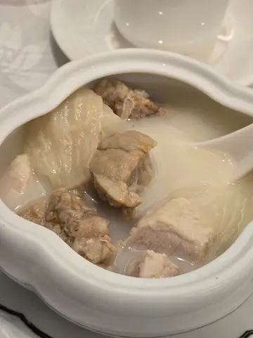 之前睇完電視介紹鹽焗雞 已經好想好想試剛有朋友生日,一大班人就BOOK呢度就可以每樣野都試下事前已經PREORDER定 鹽焗雞 &冬瓜盅份量好大,我地12人 都分到每人兩碗而且又足料,好夠味當然啱少得呢個鹽焗雞 只係比我想像中普通,我以為會更更天好食佢就只可以叫做「好食」雞就嫩,又有鹽焗味但係又未夠驚喜玻璃肉,叉燒~叉燒同平時有D唔同。但都好好食 佢有自己個風味豬手就普通魚腸個蛋就太實同硬,麻麻地豆腐出奇地好食~~炒飯就正常頭抽炒粟米又幾好食最唔應該叫嘅係呢個咖啡糕好奇怪的味道OVERALL係唔錯,但又冇我預期中咁好食服務係幾好價錢如果除開我地咁多個人,我地又無叫D好貴嘅餸人頭都係三百蚊左右都算OK