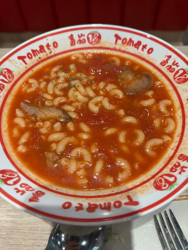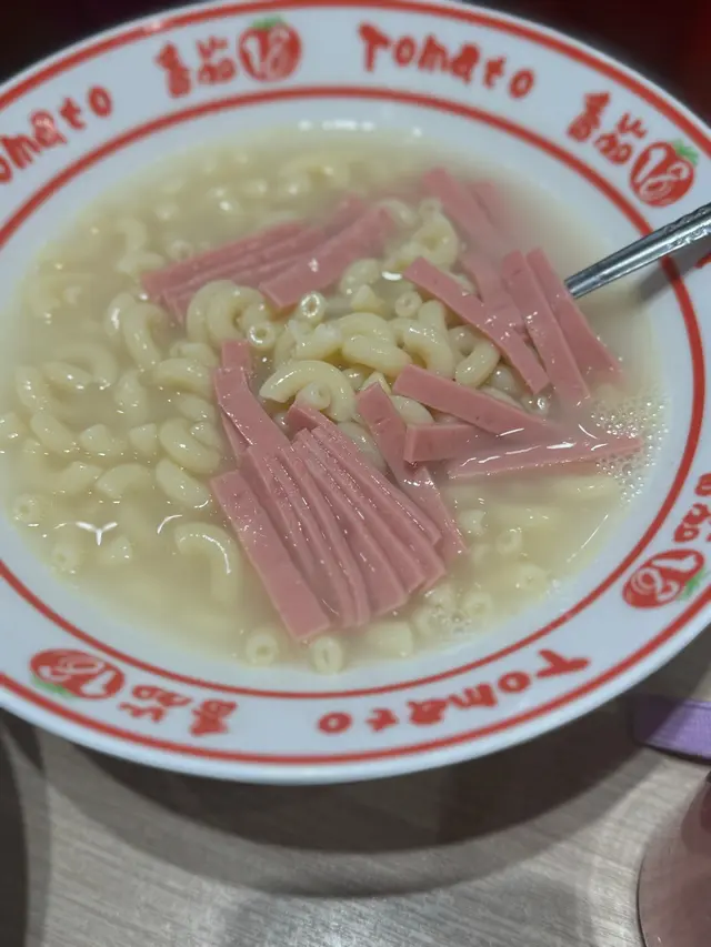 將軍澳嘅蕃茄18,叫咗佢哋嘅招牌蕃茄叉燒湯通粉,個湯底真係好濃郁,唔係用蕃茄膏煮出嚟,而係用真材實料嘅蕃茄煮成,味道鮮甜帶少少酸味,叉燒亦都好鬆化。通粉煮得啱啱好,唔會太軟亦唔會太硬,同湯底好夾真係好正。呢間餐廳裝修真係好有特色,以香港80年代嘅風格為主題。入去之後,你會見到好多懷舊嘅元素,有霓虹燈招牌、鐵閘、舊式木椅同埋牆上貼滿咗懷舊海報。呢啲裝飾真係令人感覺返到以前嘅香港味道。雖然裝修係懷舊風,但係都好乾淨,冇舊舊嘅感覺。餐廳嘅座位安排有啲緊湊,啲位置有啲逼。查看更多