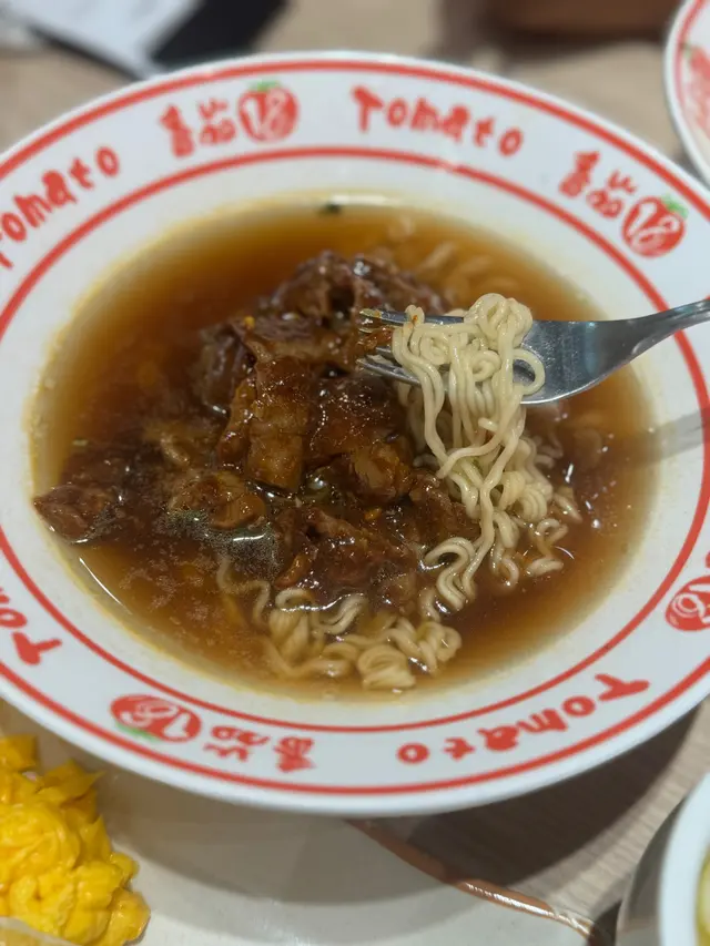 平時lunch hour黎食都座無虛席因為佢啲野食抵食夾大碗而且蕃茄湯底夠鮮甜又夠濃仲有蕃茄切件好有咬口😋😋今日食豬頸肉蕃茄湯公仔麵配牛乳滑蛋豬頸肉好厚身但唔會韌有5-6片茄湯既濃稠程度岩岩好掛哂係公仔麵身每一啖都食到鮮甜既蕃湯味真係忍唔住一啖接住一啖咁食不過餐廳冷氣唔係好夠 食到出哂汗查看更多