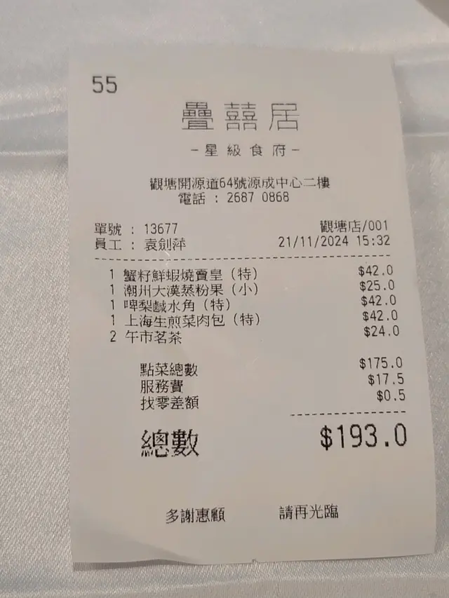 去過奧海城分店試過兩次,食物質素表現相當穩定,搞到都冇乜信心再食。但係今次屋企人揀咗呢一間分店就試吓會唔會好啲。叫咗個午市套餐再加幾款點心。個叉燒肥瘦適中,都幾淋唔會太乾。牛河雖然冇乜鑊氣,但係份量都夠我哋五個人食。個脆皮豆腐就食得幾好,一啲都冇過火,囗感外脆內嫩。鳳爪,土魷就正常發揮冇乜驚喜。如果講驚喜反而係個大漠羊肉餅,一啲都唔羶,雖然外邊炸過咁,但係食落去一啲都唔油膩。屋企嗌咗雞湯煲仔翅,個湯底係幾好,起碼飲完唔會口渴。蝦餃同燒賣啲蝦肉都比較爽口,亦都好大粒。甜品方面乳酪高就相當清新,反而對個茶粿有少少失望,因為實在太散,完全夾唔到。咁今次嚟講就好壞參半,不過都有驚喜同埋有進步嘅空間。…查看更多