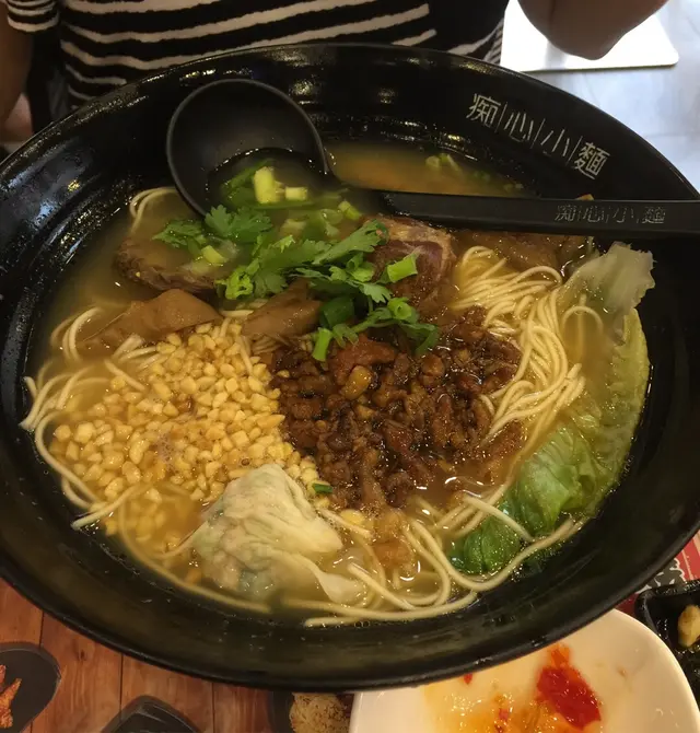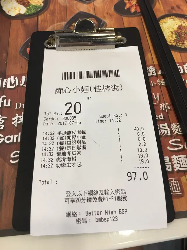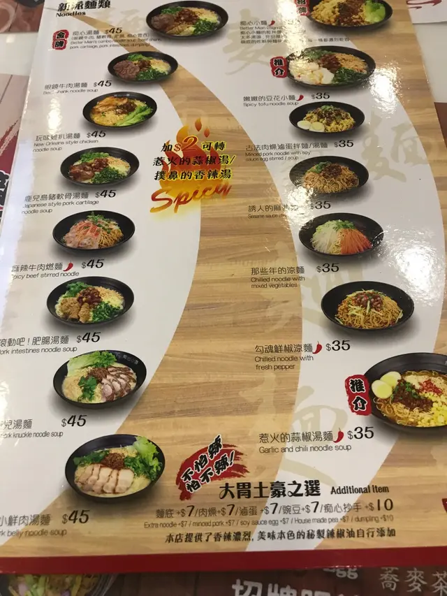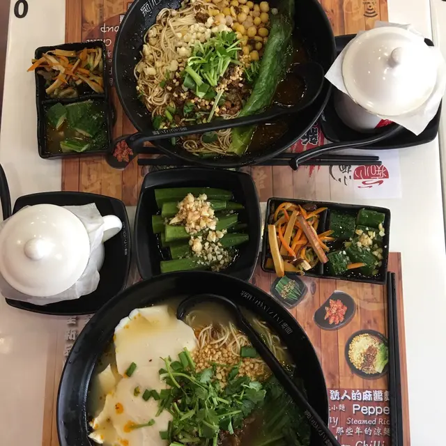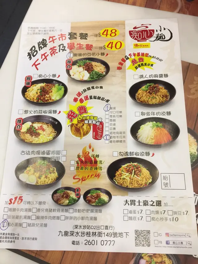 今日下午拎左假. 上左嘉頓山, 睇完日落落去深水埗搵食. 真係村姑. 千年唔黎一次原來呢度咁多野食. 原先想去食越南野, 但搵唔到. 見到路口有呢間小館.朋友話好似之前唔多覺眼. 所以見價錢合理就入左黎.除左麵食外, 佢好多台式小食. 今次叫左車仔麵. 我的要組合係清湯+米線($25)另外要四個餸或以上送一杯$14或以下飲品.咁梗係要四餸啦. 我選的餸係每個$6包括有花枝丸, 魚腐, 蘿蔔同埋生菜.黎到時一大碗, 上面有好多蔥外, 重有一粒粒朋友話似炸左的黃豆. 全部餸都無雷不特止, 個蘿蔔重有少少"驚"喜