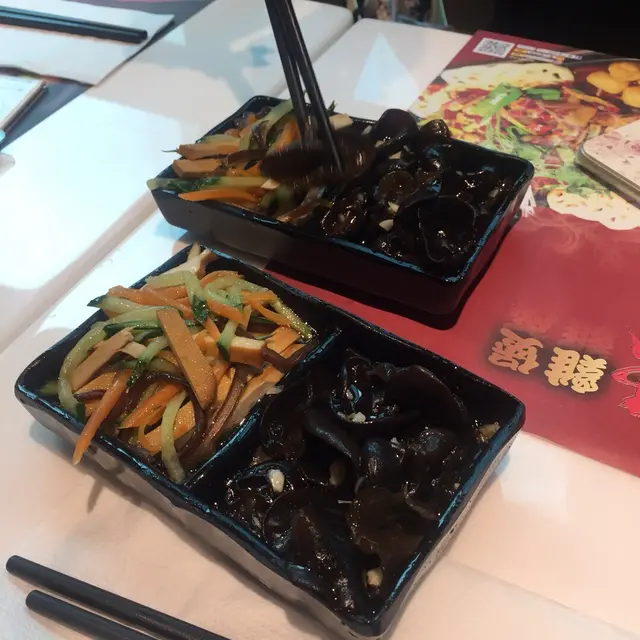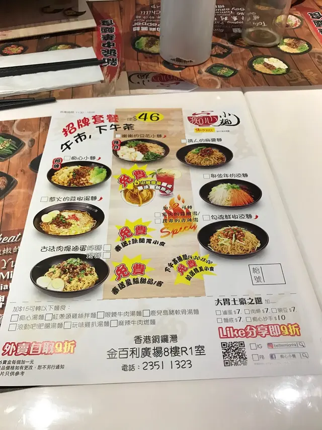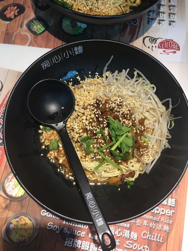 痴心小麵(Better Mian Signature)$35 係乾拌麵😊, 無湯。要搞拌後先食,碗內有好多款材料⭐,好足料, 有大量豌豆、雜醬和花生碎。麵條好軟彈,沾滿醬汁更加滋味。對我而言, 辣度接受到,又惹味👍食唔到辣嘅朋友就嗌其他野食😜而且仲每人1杯健康簥麥茶🍵, 好飲又健康,係自家冲泡的❤雪花牙籤雞🐥$29賣相及盛器很吸引,口感很好, 香脆嫩滑, 一口一粒, 熱辣辣,雞肉夠嫩😆,醬汁醒胃!值得食👍熗拌彩絲😄$25有 木耳絲,甘筍絲,青瓜絲,五香豆乾,不太特別 ☺…查看更多
