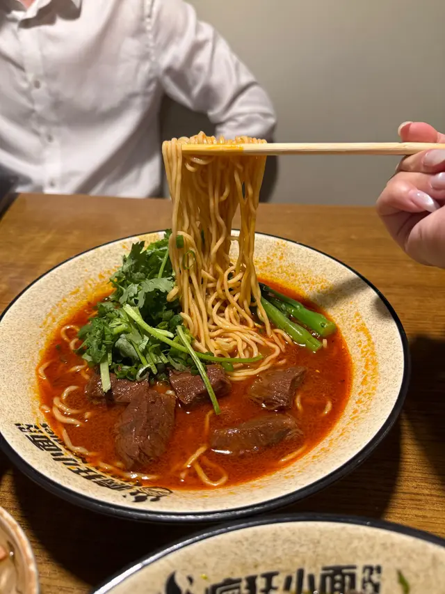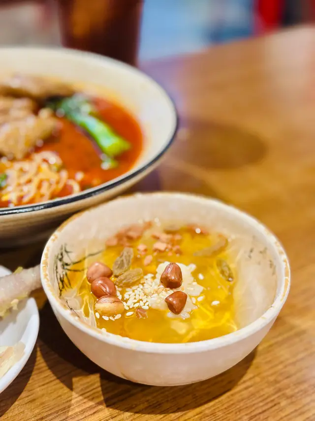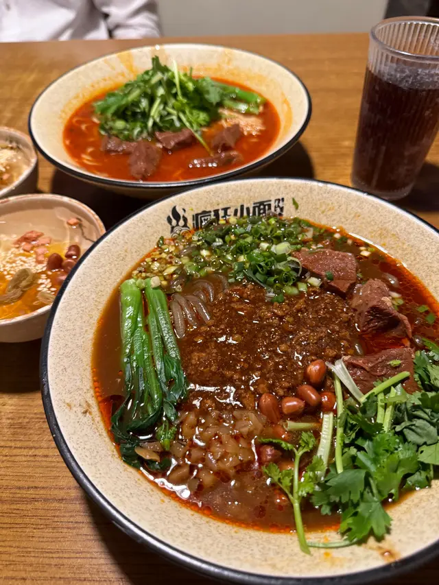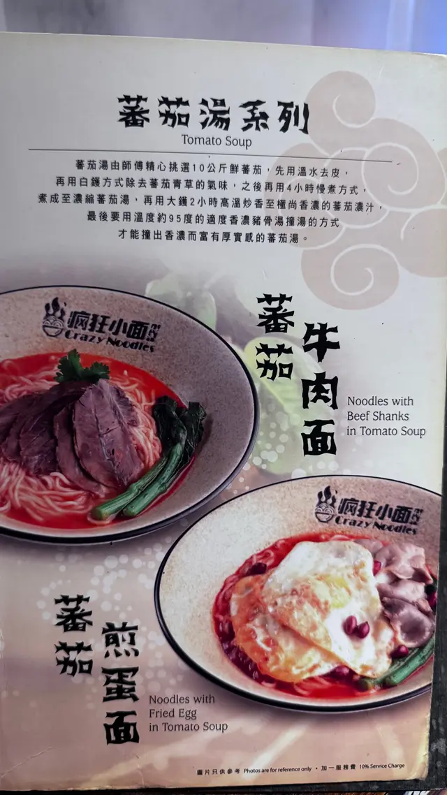 餐廳:瘋狂小面地點:中環士丹利街樓上餐館菜式:川菜餐牌:主打小麵(即係傳統重慶小麵),餐牌基本上就係三款組合既麵餐,麵+飲品 $87麵+飲品+小吃/甜品$98麵+飲品+小吃+甜品 $109另設加一。飲品同小吃都可以加錢升級。另外可以再加料。麵可以揀乾撈麵或者湯麵,同埋麻度同辣度等。自己剔紙落單。涼拌木耳 (跟餐)小食份量都唔細,爽口木耳加有蒜蓉,伴有蒜片同辣椒,都幾辣下。番茄煎蛋牛肉麵 首先飲啖番茄湯,湯底超正,帶有天然番茄甜味,食到番茄肉。番茄配蔥花同芫荽好夾!另有5塊超薄切牛肉,非常重滷水味,配番茄湯剛好!仲有三條菜心苗。呢度用新鮮水麵,餐牌寫明非油炸或掛麵,又真係食得出,好健康。d麵都唔會話太軟身或一pat pat,分量足。我另外加左款料。煎蛋 加$9 另加一煎蛋全熟,皮脆唔乾,唔錯。烏梅汁 (跟餐) 唔洗加錢飲品有4款,烏梅汁酸酸哋,好開胃。呢度d麵都唔錯,上菜超快速,果然係中環效率,地點又方便。最欣賞呢度有私隱度既單人座位,適合我呢d速食個飯就返工人士。…查看更多