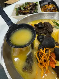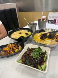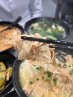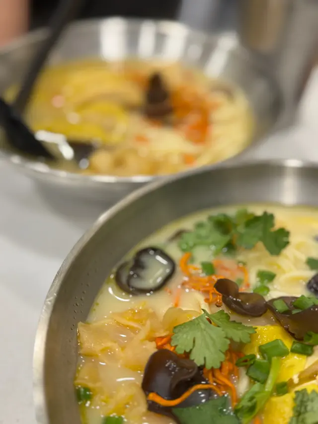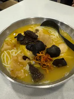 nothing beats a HUGE piping hot bowl of fish maw chicken noodles! the broth was so rich we almost drank it all. definitely coming back soon!!冇嘢比得上一大碗熱辣辣嘅花膠雞米線!個湯好味到差啲飲曬,絕對會返來🍄mushroom fish maw chicken shanghai noodles 姬松茸竹笙花膠雞上海麵the chicken was lean but tender, and the bamboo fungus soaked up all that umami goodness. we also got to choose our noodles. i tried the shanghai noodles which were rlly chewy, just the way i liked it 雞肉瘦得來夠嫩,竹笙索曬啲湯,仲可以自己揀面(米線/寬粉/上海麵/飯),我揀咗煙韌嘅上海面,啱曬我口味🐣signature fish maw chicken rice noodles 招牌花膠雞米線without mushroom but equally SATISFYING朋友幾次來都係叫呢個,雖然冇菇,但一樣咁正🍘deep fried tofu 金磚豆腐must order!! crispy, salty, peppery- addictively gooood必叫,脆卜卜,椒鹽超惹味🍹yuzu tea 熱柚子蜜 🍑peach oolong tea 凍蜜桃烏龍冷泡茶price: $50-100 pprating: 9/10revisit? yesss…查看更多