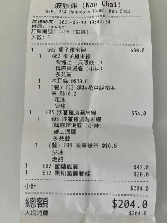 癡膠雞 (軒尼詩道) (灣仔) 網上訂座即賺Rice Dollars 網址: https://s.openrice.com/QrbS0Agy500 地址: 香港灣仔軒尼詩道254號地舖 電話: +852 35638180