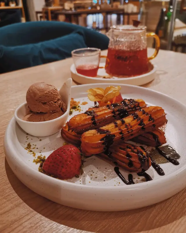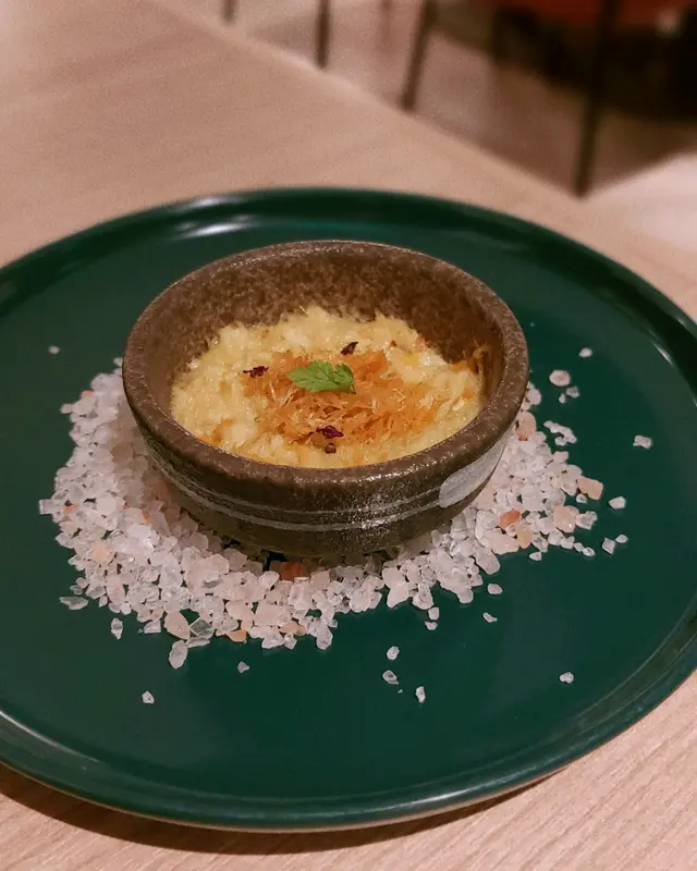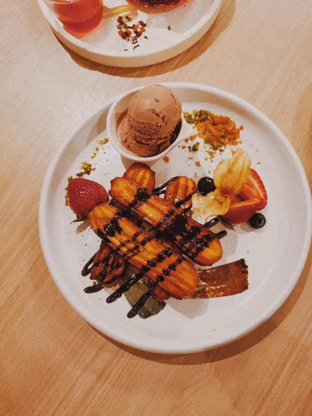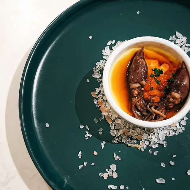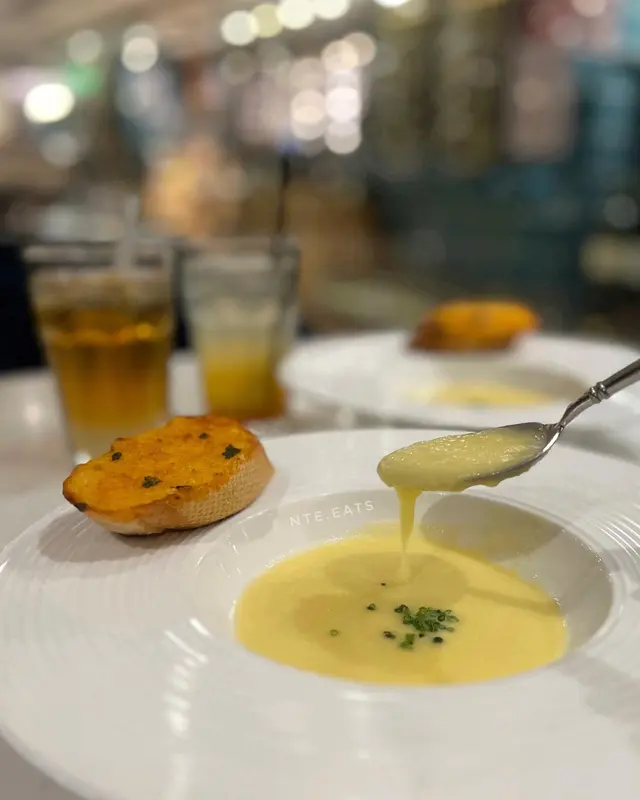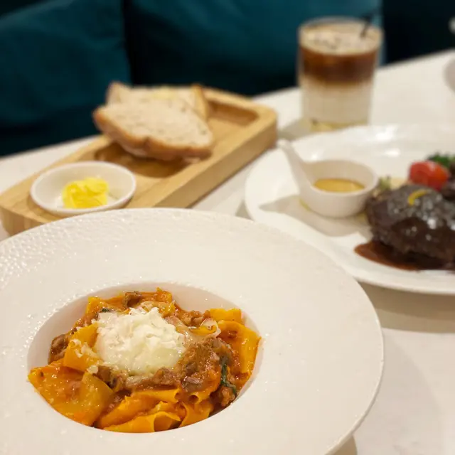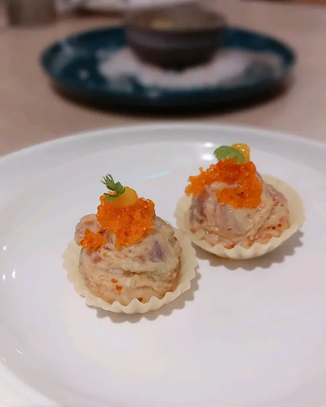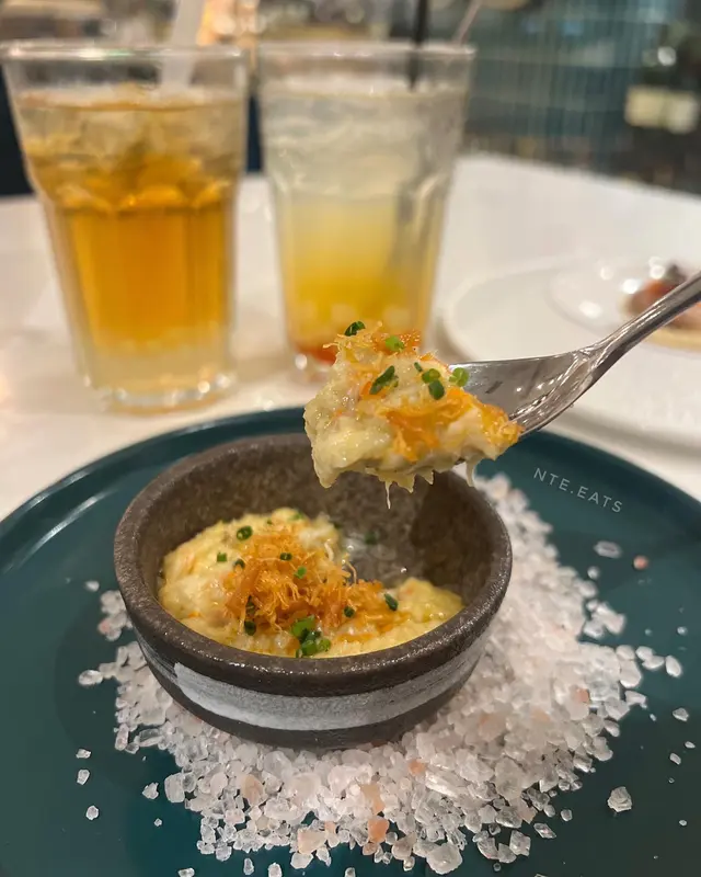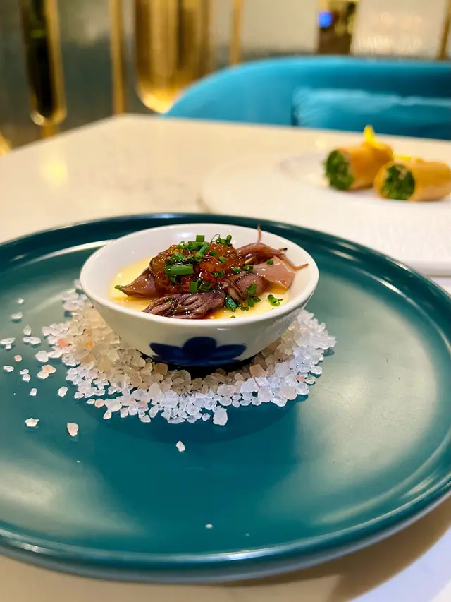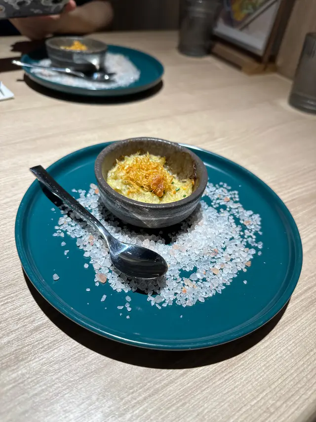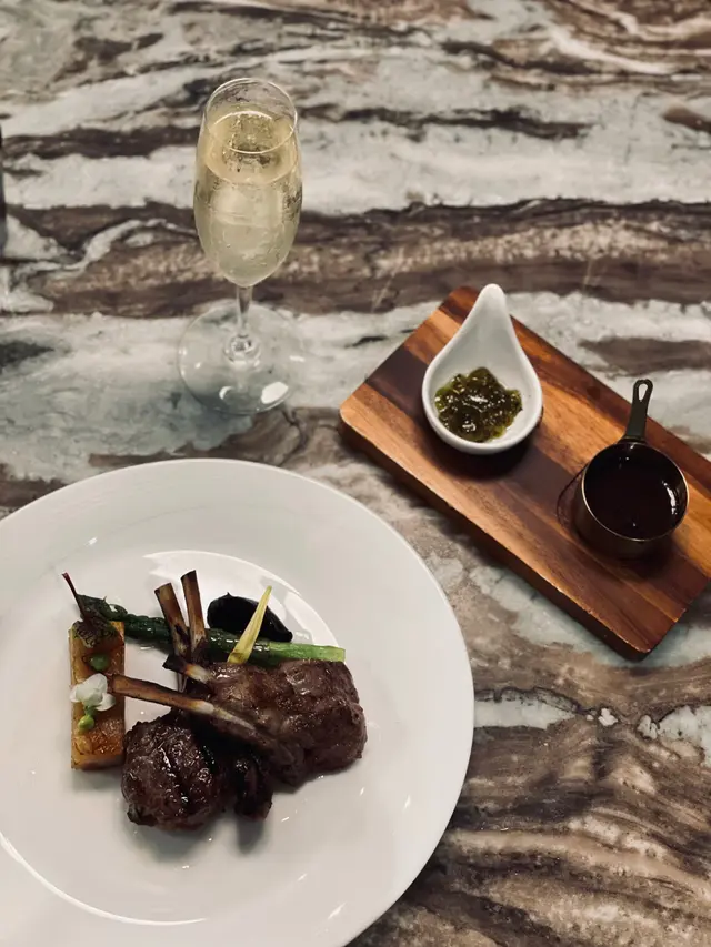 我哋叫咗二人餐前菜可以揀兩款~Fire-fly Squid Egg Custard with Salmon Roe三文魚籽,螢光魷魚茶碗蒸螢光魷魚同茶碗蒸估唔到又幾夾,帶起咗個鮮味Seasonal French Oyster, Jalapeño Dressing.法式焗蟹肉,乾瑤柱焗蟹肉上面鋪咗幾多乾瑤柱下,都幾好食Spaghetti with King Prawn,Semi Dried Cherry Tomatoes in Lobster Sauce海虎大蝦龍蝦汁意粉虎蝦都幾新鮮,食落幾鮮甜,意粉al denta 唔會太淋,蒜香龍蝦汁都算濃,幾夠味,唔錯~Charcoal Grilled Argentine 120 Days Grain FedAngus Rib Eye Steak, Red Wine Shallot Sauce阿根廷 120 日穀飼安格斯肉眼牛扒,乾蔥紅酒汁我地叫咗五成熟,不過有少少偏熟~但好彩唔會太韌,牛味都算濃,唔點紅酒汁都夠味~甜品係楊芝甘露~呢個就麻麻地了🙈小丸子好硬好有粉感同埋太甜了…查看更多