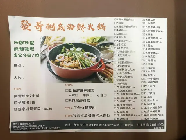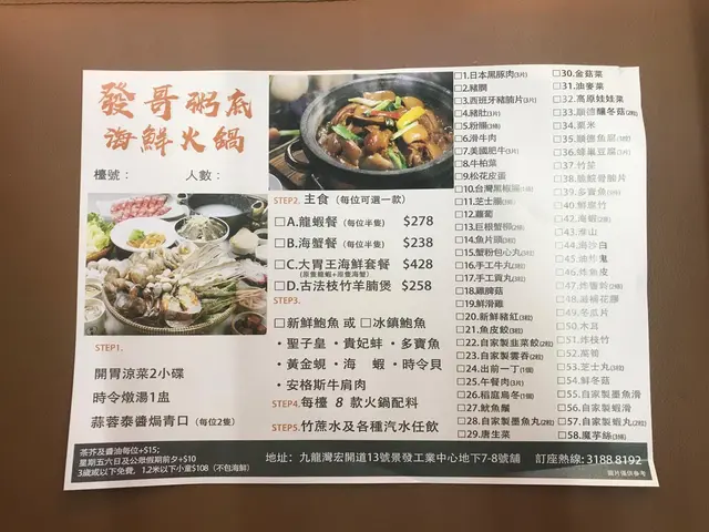 朋友生日話想食海鮮火鍋,佢話有人介紹去九龍灣發哥,吓!我住咗九龍灣十幾年都唔知有間發哥火鍋出名喎,咁就陪左佢去。由於二人都係第一次,要睇地圖,去咗到工廠門口,就只見招牌指示,經過大堂電梯側見到招牌至搵到個門口!嘩!係咪食好嘢要先花點功夫呀??既然咁辛苦才搵到發哥就梗係食好D!兩個龍蝦餐,哈哈,好似好豪,但都只係$278/位😂😂前菜有白雲鳳爪,拍青瓜,兩款都做到好入味,食吓食吓,又上兩盅燉湯,鮑魚雞腳燉湯,足料湯濃👍🏻等緊火煱料時,又上咗碟泰式青口,每隻都微酸酸甜甜,KO咗才記起冇影相喎😂😂期待嘅龍蝦海鮮出場啦,有好大隻嘅龍蝦呀,又多膏,二人各半隻,另有:元貝、鮑魚、象拔蚌仔、海蝦、黃金蜆各有兩隻,而且都好新鮮呢😍😍,仲有幾件多寶魚添。佢哋嘅安格斯牛肩肉真係唔錯肥瘦適中👍🏻另外仲可以喺58款火鍋配料中揀選8款,食完大大隻龍蝦及各款海鮮都已經7成飽,但都揀左日本黑豚肉、鮮雞肉、蟹粉包心丸、蘿蔔、沙白⋯⋯我仲特別揀咗皮蛋添,因為最後嗰粥水湯底會用黎煮粥架👏🏻👏🏻一個字:正到痺😋😋…查看更多