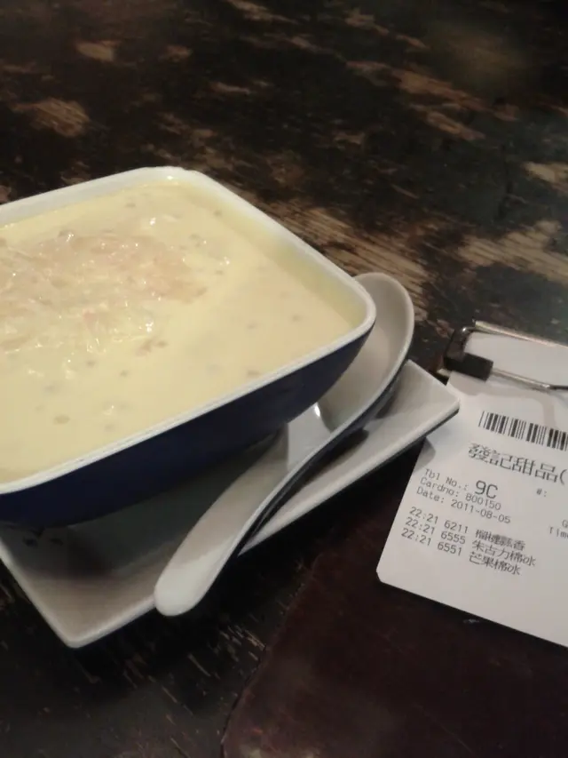 好久沒有來發記 很想念他的榴槤系列這年都沒有吃到很多榴槤唯有到甜品店吃 那就又香又好吃囉 XD這次來到店內 沒什麼人 可能時間還早吧通常人在這個時間還在吃晚飯呢我們3個人點了3款甜品 Share來吃 …..榴槤糯米滋 :: 糯米皮比較厚了一點 也不夠綿 口感不太好裡面的餡料都是滿滿的榴槤肉 好香好甜喔~ 餡很讚啦!!榴槤脆卷 :: 擺盆不錯 好像很大一條春卷 擺在碟上只可惜脆皮太脆 夾起來就整個皮碎了 薄到沒有什麼口感就只有溫溫的 榴槤肉也有一點溫度 但口感也沒差但過熱就應該怪怪的 現在還可以 不過還是喜歡涼涼的=]藍莓棉棉冰 :: 不夠冰 在溶化的感覺 藍莓也不夠濃只是淡淡的 整個味道吃起來不吸引 所以都沒有吃完就不想吃了…查看更多