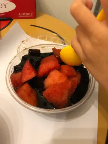 今日比較早食左晚餐,特別外賣左兩碗糖水番屋企。分別係西瓜涼粉,椰汁紫米露。西瓜涼粉普普通通就跟平時吃的差不多。但椰汁紫米露就很差了。椰汁沒有椰汁味,紫米也不算很軟稔那種,而且沒有任何味道,很失望。
