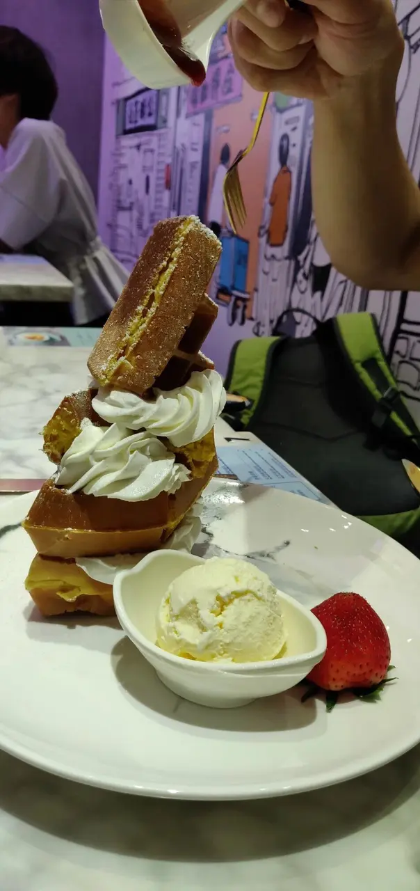今日係旺角打完邊爐,心血來潮想食甜品,兼搵個地方傾吓計,朋友就介紹黎呢間餐廳食甜品。餐牌上嘅食物款式選擇都多,我一直以黎都對心太軟情有獨鍾,可惜店員話今日嘅心太軟已經售罄。我同朋友想食啲特別小小嘅甜品,唔想食糖水,所以就揀咗竹炭窩夫同紅豆窩夫。食過好多甜品鋪個窩夫都係室温,但呢度嘅窩夫上枱時依然保持熱辣辣,同雪糕一冷一熱,互相配合,口感層次提升,值得一讚。紅豆窩夫入口較香甜,味道冇咩特別。我就比較推薦竹炭窩夫。就算唔加任何配料,窩夫本身都已經好好食,口感鬆軟,有種獨有嘅香氣,而且一啲都唔會甜,味道清新。查看更多