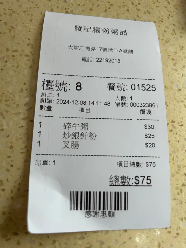 外賣四碗粥加幾件油器,一直喺舖外面等,期間一直有啲遲過我落單嘅人入舖頭裡面催,因為真係等得太耐,大家都等得唔耐煩,職員就猛咁叫返啲人出去等。我見到有四碗粥擺咗喺度20分鐘,但係職員又一直冇pack冇叫人拎,我諗梗係咪外賣平台嘅order,等咗45分鐘後我眼見住遲過我order嘅人都入去拎走外賣,我忍唔住入去問,個職員好忙亂,問咗我個外賣號碼之後,佢就喺度排啲外賣單,然後見廚房出餐佢就拎俾堂食食客,職員搞完其他嘢之後終於行返嚟理我,我問呢四碗粥係咪我㗎?我見放咗喺度好耐!佢完全無視我問題喺度pack外賣,就係擺咗好耐呢四碗粥,然後交俾我,果吓我嬲到冇聲出,呢間嘢真係冇下次!其實廚房出餐時間唔耐,係樓面嘅職員分工好混亂,要顧住order、送餐、pack外賣、收錢,好多外賣放晒喺枱冇人理,所以外賣客個個走入去催,邊個入去催就pack咗佢先!仲有呢間粥檔居然係冇牛脷酥,淨係得油炸鬼,當我叫咗幾件油炸鬼我先至望到地下個雪櫃,原來雪住啲急凍油炸鬼!急凍嘅仲要同外面粥檔即造嘅同價!$11,叫完果刻勁後悔…外面啲粥檔油器就算依家幾縮水都好,都叫即製,呢間發記真係令人失望😞…查看更多