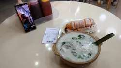 晚上大約九點到來,入座率超過一半,通常都是一或二人的食客,主流都是街坊吧,男士通常都斜孭袋及穿短褲,小店深秀街坊支持。期間的外賣並沒有許多,印象終止聽見一次響機,所以現場也不是太吵,我就靜靜找了一處角落就坐,還開了直播,後來觀察現場情況,環境聲是可以的,就是一般能夠聊天的那種。我叫了一客炸兩及蠔仔粥,前者就一般般吧,並沒有很脆的效果,而且溫度並不太熱。至於是由的份量,國際慣例都是有多冇少的,總之就一定夠味吧。蠔仔粥方面用了十足!配料環包括大量蔥花及薑絲,調味的感覺下了不少胡椒粉,這個我就覺得不夠討好了,因為自己口味比較愛清淡。…查看更多
