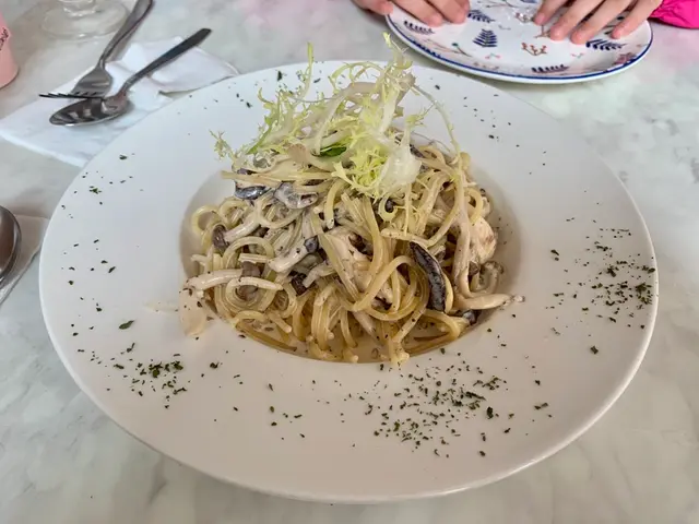抵唔抵就見人見智我同另一位朋友就叫左個白汁蘑菇煙三文魚意粉 同埋 鮮茄磨菇德國腸意粉🍝另外跟餐加錢跟左兩杯熱咖啡同熱朱古力☕️雖然呢度圖案唔係拉花 只係撒粉 但見網上經常見有人打卡 而且有好多款人物