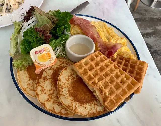 不過入到去餐廳幾細下 位與位之間既位置非常小 網上睇到既相片同我實質到鋪個時既感覺有好大出入有兩位朋友選擇左All day breakfast 有三個set A B C set B set比A set多左塊煙三文魚 就索價多$20 而Set C比起set b 就多左Parma ham就再貴多$20