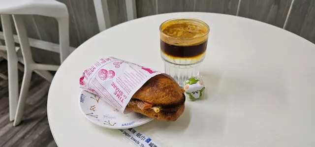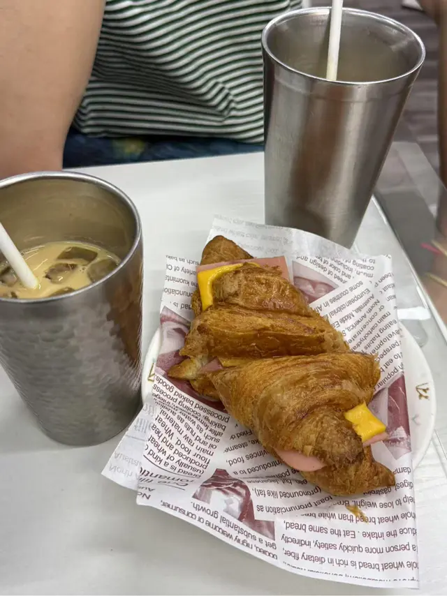 鲜奶咖啡、蜂蜜咖啡、火腿芝士牛角包