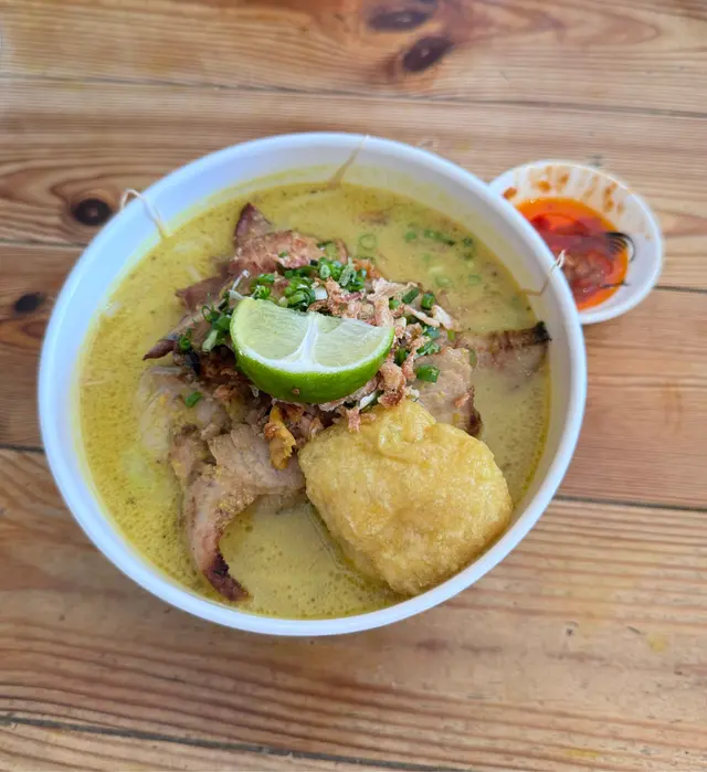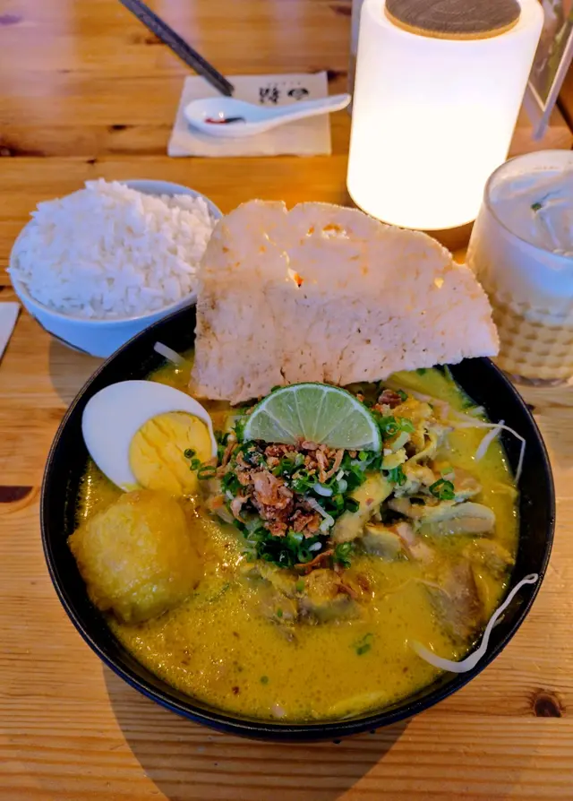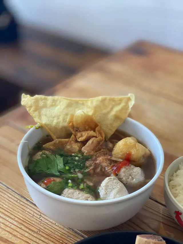 近年不時到西貢逛街及用餐,卻不知有白鬚這間餐廳,直至因為租約問題要關閉,才知悉有此餐廳。餐廳的風格悠閒,很適合不趕忙的人們談天說地,只是木椅比較堅硬,久坐有點難受。雞卷的尊容一點也不討好,卻原來出乎意料的柔軟和富肉汁,勝過外貌正常的炸春卷和魚餅。豬頸肉嫩滑,湯底帶有熱帶風情兼俱香草與椰漿的香氣,只是有點油膩。印尼牛丸的特色是混入了洋蔥打成,但還是比較喜歡潮式牛丸的爽口彈牙兼牛味濃郁,湯底卻是鮮甜美味的。可惜最想嘗試的牛骨湯飯沒有供應,雖然三人行,但最終只加多了一碗白飯,以牛丸河湯自製湯飯。不是咖啡人,但咖啡朋友對出品滿意。青檸梳打少甜清爽,很適合夏天飲用。…查看更多