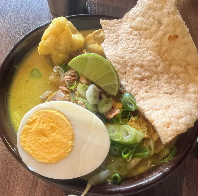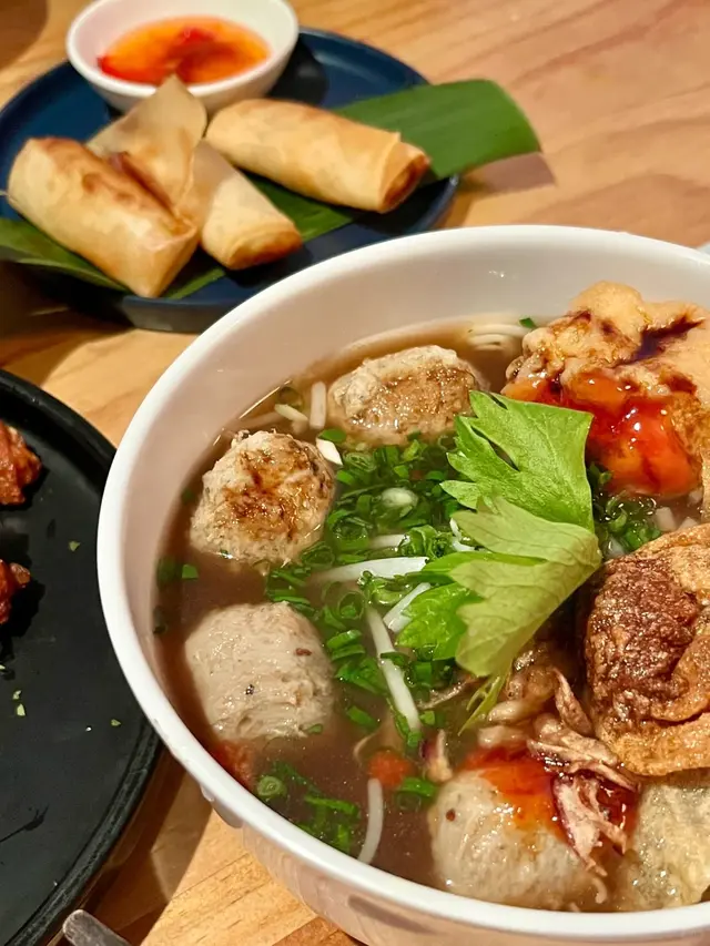 上次入嚟食酒店嘅lunch buffet , 見到呢間,今次特登入嚟試。叫咗~白鬚牛骨湯飯 真白鬚(淨牛丸) 酸辣鳳爪 蔬菜春卷(半份) 炸薯寶淨牛丸,有啲炸薄脆片,面頭牛丸,大約六粒,墊底係芽菜,湯小小濃~可以,牛丸口感同味道唔似出面牛腩麵檔果啲,又唔彈牙,味道又唔特出~一般般。牛骨湯飯~湯底清湯咁,無乜味,牛骨二舊仔,喺上面鋪左啲牛肉,牛腩條之類,一樣都係一般般。二樣小食唔使講,香口野無話唔好食,性價比以薯寶較好,三條春卷仔(半份)$26.酸辣鳳爪,面頭加啲甜酸酸菜,增加唔小分數。埋單$421,坦白講食完都唔係好飽。回頭度:4/10感覺食物選擇唔多,質素中間,比起一般嘅印尼餐廳係好啲,起碼衛生同格局都好好多,個人覺得食物未去到好好食果隻,唔會值得專登揸車入嚟食,但今晚佢哋又幾好生意,個人覺得會唔會係呢間酒店無其他選擇,而啲人又唔想行老遠去食?以上純粹個人食後分享,絶無收受任何利益或優惠,亦願意承擔所有責任。…查看更多