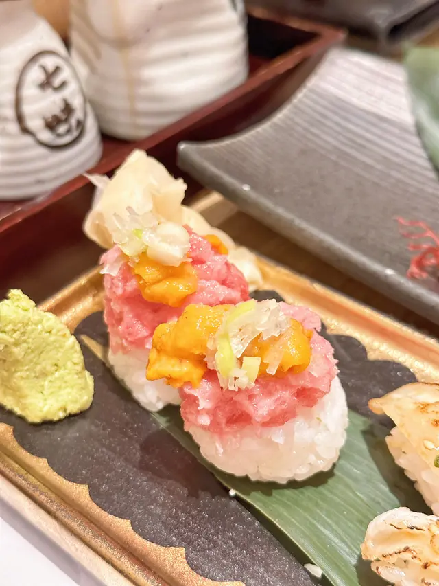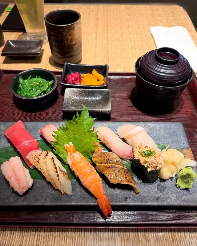 呢個 Shiro Bento 成套設計走精緻高質日式風。首先係 漬物 開場,清爽開胃。跟住就係重點嘅 精選刺身:有吞拿魚腩、牡丹蝦、赤貝、油甘魚同三文魚,每一款都係常見但高人氣嘅刺身拼配,油脂感同鮮甜度都有層次。燒明太子帶子壽司係其中一大亮點🔥,帶子厚實鮮甜,配上明太子微微鹹香同焦香,入口好立體。時令魚薄切做成 carpaccio,食落清新輕盈,可以同前面油脂感豐富嘅刺身形成對比。最後嘅 碎蔥吞拿魚腩丼真係畫龍點睛,用上肥美嘅 tuna belly 加蔥花,滑潤得嚟又唔會過膩,配飯食係完美 ending。以 HK$418 價位嚟講,份量唔算超大,但食材選擇同搭配都幾講究,適合追求質素同精緻感嘅人。整體感覺係「精緻便當」而唔係「飽肚便當」。…查看更多