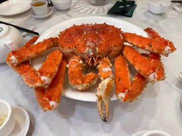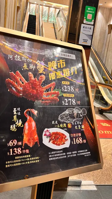 今晚做節食中菜,黎左筲箕灣東大街嘅百好名宴。佢本身係百滙,啱啱裝修完改咗名。佢哋最近出左個阿拉斯加長腳蟹套餐,只係$238/斤,另外想食埋魚同雞嘅話,仲有個$168 套餐可選擇。阿拉斯加長腳蟹套餐 ($923 大約3斤半)酒樓魚缸入邊有好多長腳蟹,隻隻生猛任你揀,我哋6個人揀咗隻3斤幾4斤嘅長腳蟹,上枱時蟹身色澤鮮艷,蟹殼光滑,十分新鮮,金黃色嘅蟹膏多到好似瀑布咁滿瀉,撈飯食鮮味無窮。蟹腳肉質結實彈牙,原汁原味,汁多鮮甜。至尊燒鵝 ($138半隻)燒鵝肉質嫩滑,幾乎没有任何肥膏,每啖入口咬着燒得香脆嘅外皮,夾雜住香濃軟腍嘅鵝肉,加上甜酸醬,味道實在無可挑剔😋…查看更多