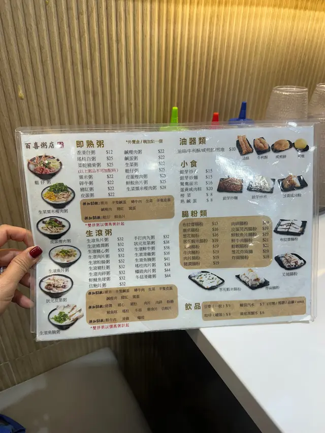 好味,扺食 Willow Yellow等級42024-12-29254 瀏覽 關注 今日好想食粥,就嚟一試。好開心呢到食得番好多傳統粥品,包括我鍾意嘅「碎牛粥」,「牛脷酥」,「油炸鬼」,仲有「豬腸粉」。呢到啲粥大大碗,足料!雖然我食嗰陣時個牛脷酥同埋油炸鬼唔係啱啱炸起,但食落都好香脆,同埋好大嚿👍🏻好欣賞佢哋嘅腸粉,好滑溜,加埋甜醬、辣醬、麻醬,再加啲芝麻,簡直絕配!另外再叫咗隻鹹肉糭,配豉油,隻糭唔會腍啤啤,有口感,又唔會有太多肥豬肉,好適中!想提一提佢哋嘅服務員,個個都好殷勤有禮,值得讚賞👍🏻👍🏻…查看更多+ 3以上食評乃用戶個人意見 , 並不代表OpenRice之觀點。讚好分享好味,扺食 百喜粥店 https://s.openrice.com/QrbT01Y1P00檢舉 張貼 評分3味道3環境4服務3衛生3抵食推介美食牛脷酥用餐日期2024-12-28用餐途徑堂食人均消費$42 (晚餐)