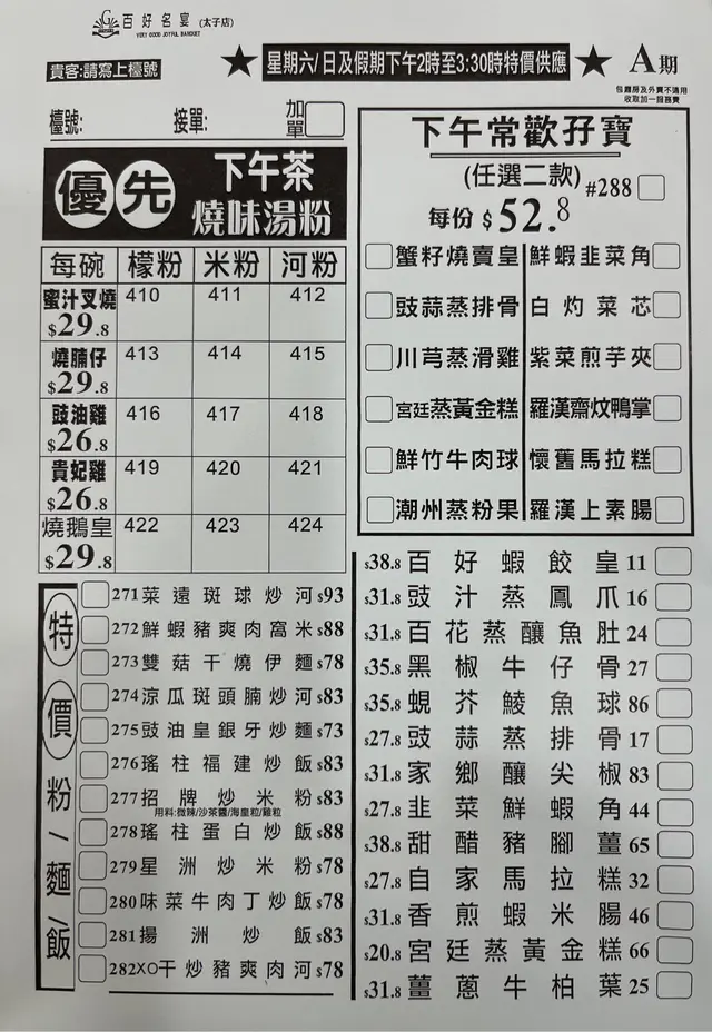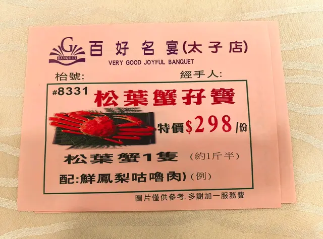 百好名宴 (太子) 網址: https://s.openrice.com/QrbS0GtSA00 地址: 香港太子彌敦道760號聯合廣場2樓 電話: +852 23231818