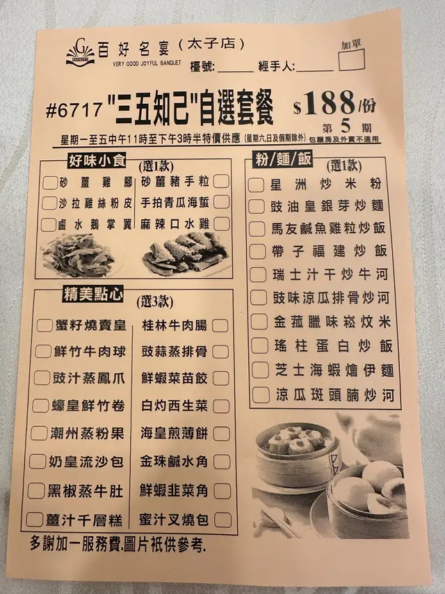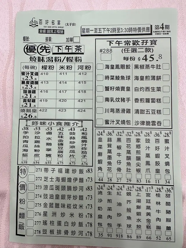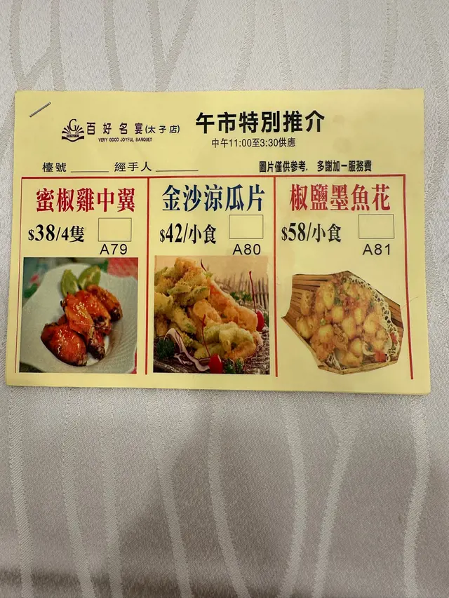 百好名宴 (太子) 網址: https://s.openrice.com/QrbS0GtSA00 地址: 香港太子彌敦道760號聯合廣場2樓 電話: +852 23231818