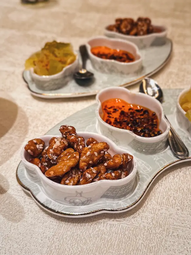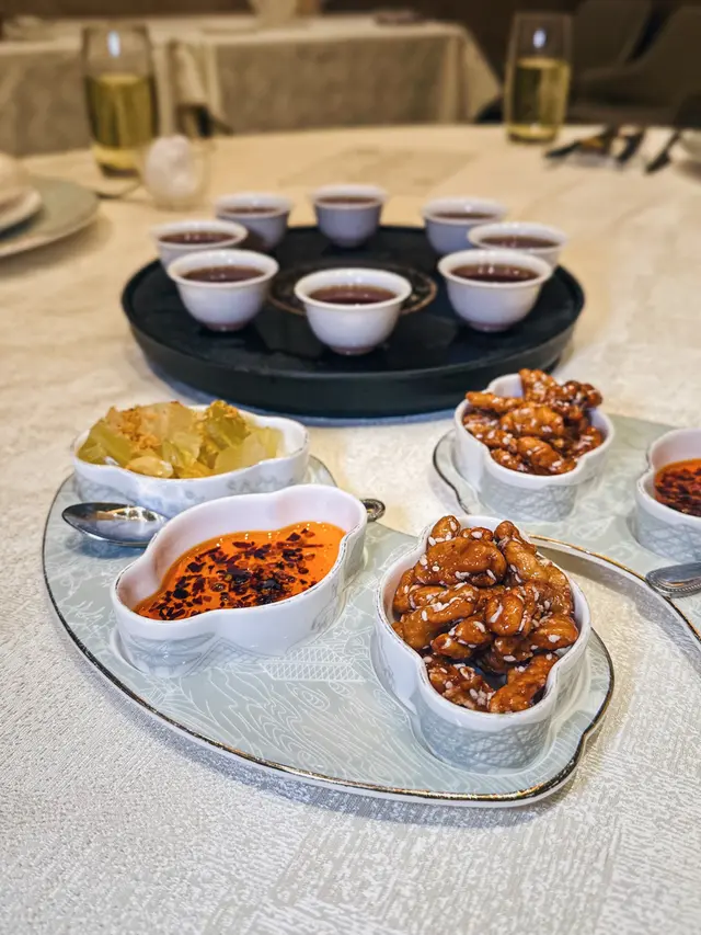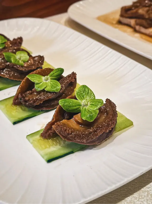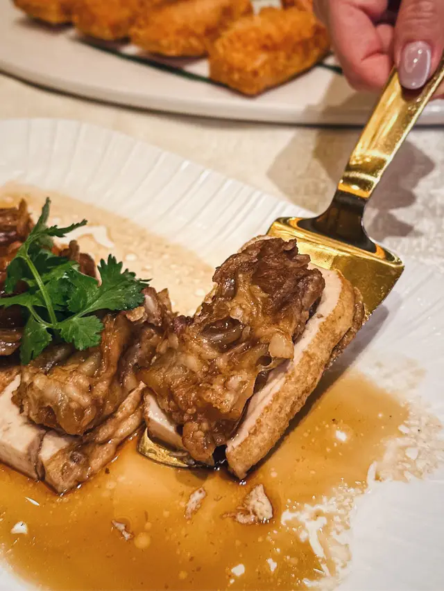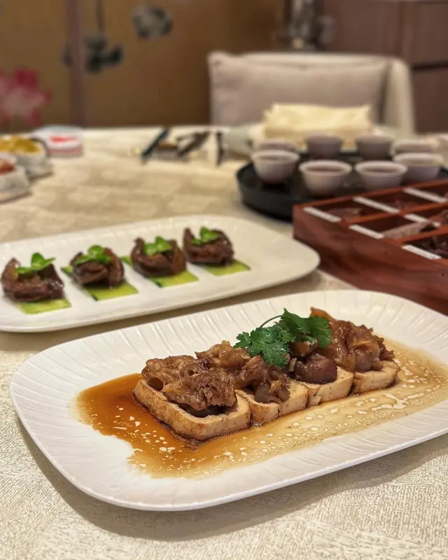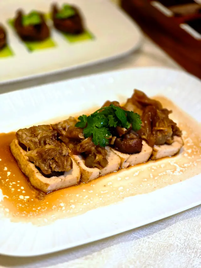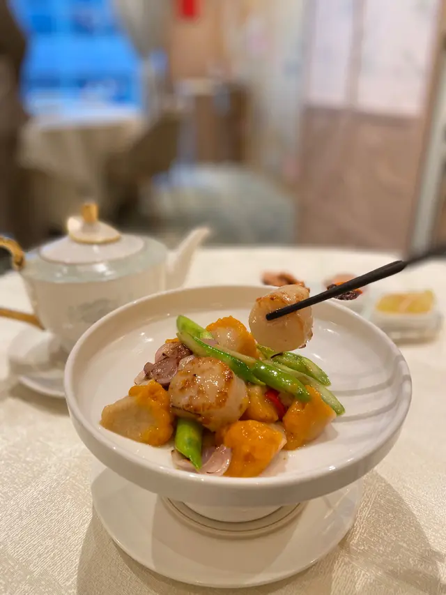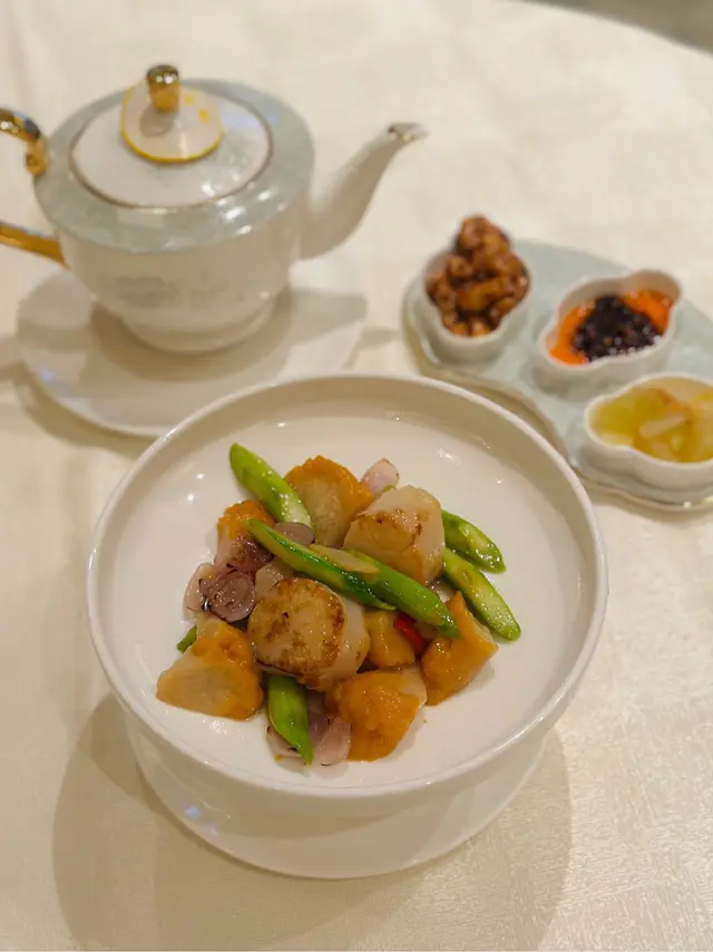 平時較少接觸潮州菜,是次來到百樂潮州私房菜,環境舒適典雅,佳餚的美味令人一想再嚐🥹上菜前先嚐嚐潮州的功夫茶,茶濃而香。套餐分為數部分,全都不能錯過!頭盤✨鮮黃耳炒帶子煎香而金黃的滋味刺身帶子,與新鮮的黃耳菌類,味道鮮美✨黃金炸汕頭蟹棗外脆的炸腐皮,與內嫩的蟹、蝦肉加入爽口馬蹄粒製成球,沾上潮州甜醬,風味獨特點心拼盤 ✨黑松露帶子蝦餃鮮香黑松露搭配蝦餃的滑嫩,啖啖滋味✨海膽芝士蝦春卷創新的海膽與芝士配搭,味道濃郁✨上海小籠包經典的上海點心,湯汁豐富✨咖哩雞千絲酥咖哩味濃郁,酥脆外皮湯類✨粟米愉耳魚肚羹魚肚口感綿滑帶點清爽,粟米提升了湯品的清甜度招牌小菜✨中式洋蔥牛柳洋蔥加入牛柳炒香,肉質軟腍蔬菜✨方魚炒芥蘭幼嫩的芥蘭入口柔軟,搭配方魚,感覺健康又美味麵✨蟹粉燴伊麵蟹肉的份量頗多,與伊麵結合,滋味無窮。✨精選甜品楊枝甘露清新開胃,芒果肉甜絲絲金奇異果凍感覺新穎,有果肉在果凍內,令人驚…查看更多