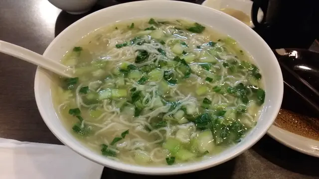 Ordered the Pork and Chinese Cabbage Wonton Noodles. The noodles were plentiful and with a nice texture, and the soup was really good. Very aromatic and tasteful, but in a subtle way. The soup definetively made the dish. The wontons tasted okay too, but the skin was a bit too hard though. For 36 dollars, it would have been nice with one or two more wontons (a glass of soy bean milk was included in the price, so still not bad for the price). Their dim sum dishes look really tasty, so I will try their dim sum next time I'm try this restaurant. …查看更多