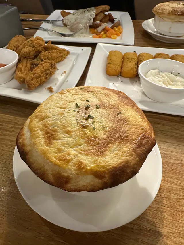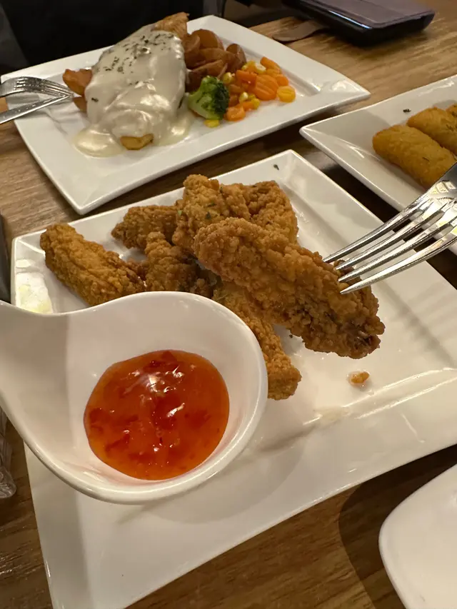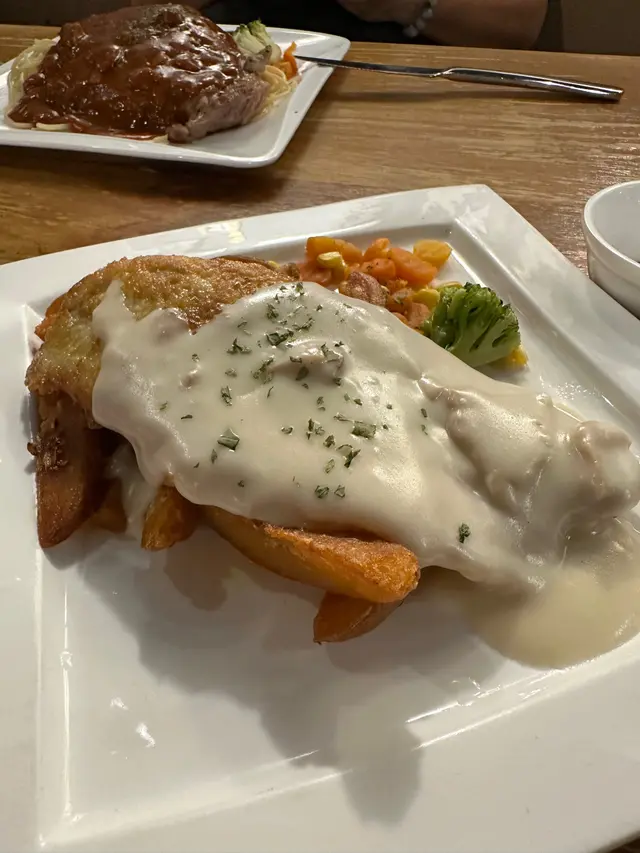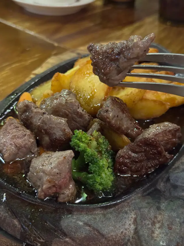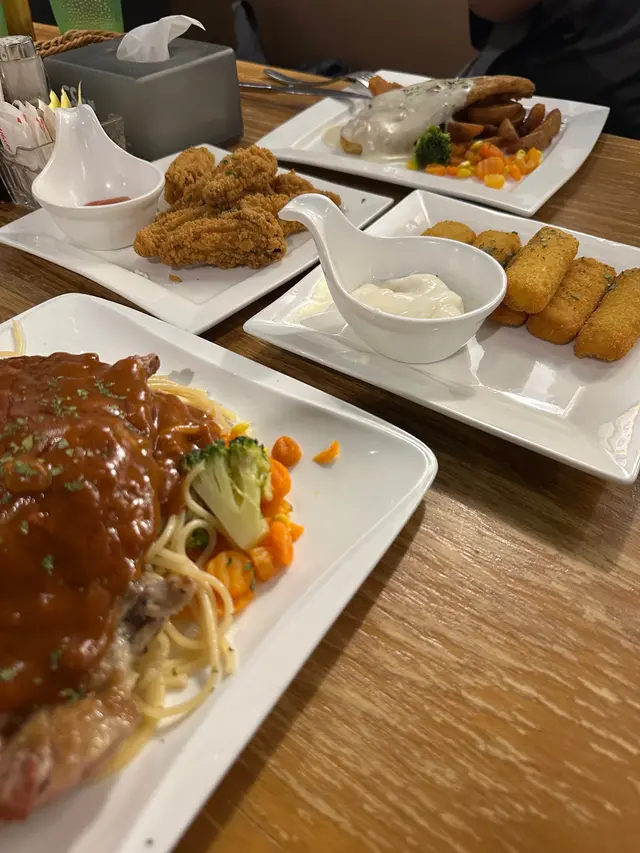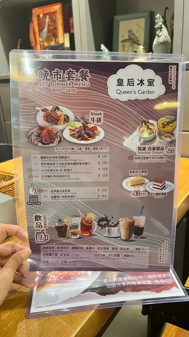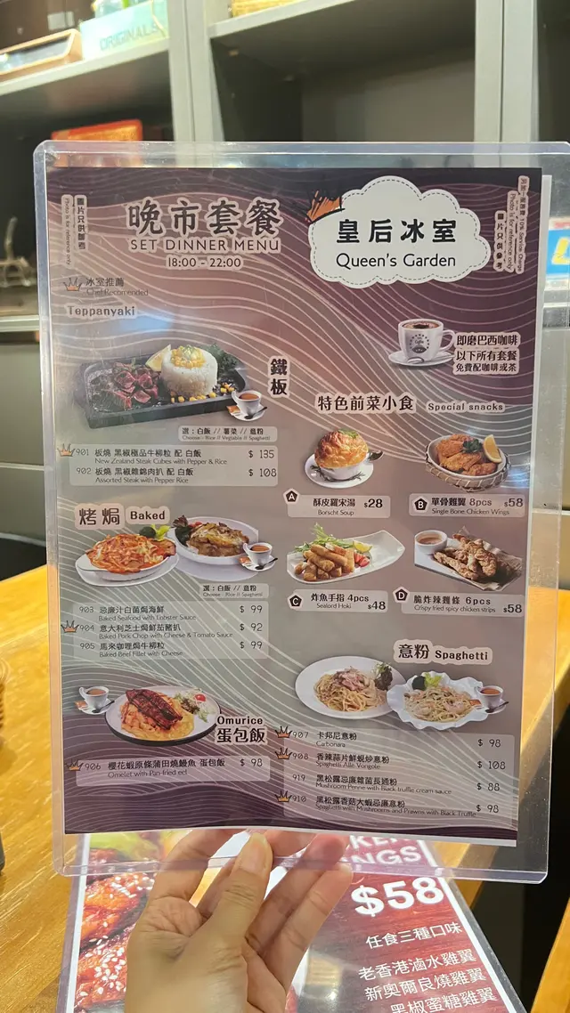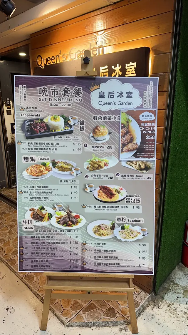 同朋友行觀塘,知道有間午市人氣冰室!無論扒定係意粉都好有水準,性價比極高!諗都唔使諗就決定去!😋餐廳環境寬敞,裝修好有懷舊feel,牆上面掛住啲老相同海報,無論影相打卡定係靜靜地傾嚇偈都非常適合!🥂• 🐮美國費城烤西冷野菌燒汁配意粉 ($92)西冷牛扒分量好足,外面帶焦香內裏肉質嫩滑,切開嗰陣仲有肉汁流出嚟。野菌燒汁好香濃,撈埋意粉一齊食,簡直係絕配!• 🌊香煎魚柳伴磨菇忌廉汁配薯菜 ($74)魚柳煎得金黃香脆,入面啲肉仲好滑,完全冇腥味。磨菇忌廉汁好creamy,配埋旁邊嘅薯角同配菜,好正!• 🌟酥皮羅宋湯 (加配 $28)酥皮烤到卜卜脆,敲開嗰下,個湯嘅香味即刻出曬嚟!味道酸酸甜甜好開胃,料又多,將酥皮浸落湯度,最高享受!• 🍗單骨雞翼 (8隻 $58)雞翼炸得好脆,肉又多汁,調味啱啱好,配埋飲品一流!• 🔥炸魚手指 (6條 $48)魚肉好厚實,外皮好脆,點埋茄汁,簡單又好食。• 🍰芝士咖啡蛋糕 & 紐約芝士蛋糕 ($38/件)兩款蛋糕都好出色!芝士咖啡蛋糕有淡淡咖啡香,口感順滑;經典嘅紐約芝士蛋糕就芝士味好濃,酸甜岩岩好,食完一啲都唔滯。皇后冰室嘅嘢食質素好高,性價比又夠高。鍾意懷舊風,又想食啲好味嘅西式簡餐同甜品,絕對係觀塘一個唔錯嘅選擇!👍🏼…查看更多