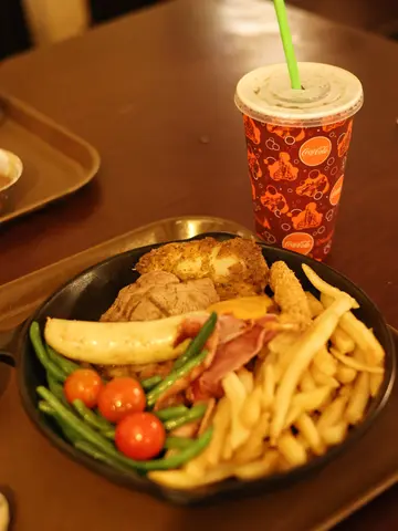 📍🇭🇰今次嚟到位於迪士尼樂園嘅餐廳🍴朋友提議不如嚟呢間餐廳食入到嚟都好多人,好彩都搵到位坐😋 ✨環境外面有少少似馬戲團嘅設計🎪裏面賣食物嘅分咗幾個區域分別係食唔同國家嘅菜式餐廳座位其實都算多👍🏼仲有唔同嘅公主雕像👑幾有氣氛不過地下係凹凸不平嘅石路由於要自行推餐車去座位所以推嘅時候成架車會震震下😹點咗湯食嘅要注意下⚠️🍴食物🍕意大利肉腸薄餅套餐 ($140)比到我手嘅時候Pizza都暖暖地Pizza嘅份量非常充足!一個人食都完全夠飽💕調味都足夠,肉粒同肉腸都俾得唔吝嗇👍🏼芝士做到拉絲效果🧀唯獨是側邊偏乾,所以無食到側邊個皮樂園質素嚟講都OK🐭服務店員嘅服務態度都唔錯,有面帶笑容☺️幾有禮貌👍🏼✨推薦分數 : 6 / 10