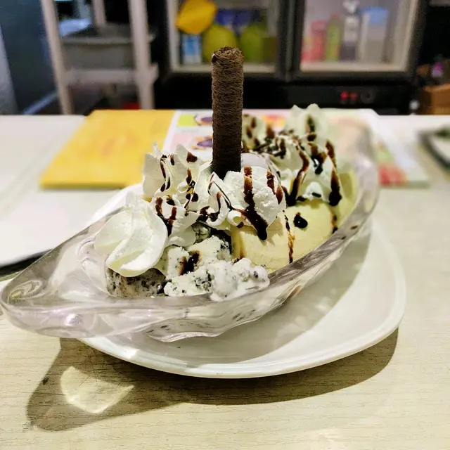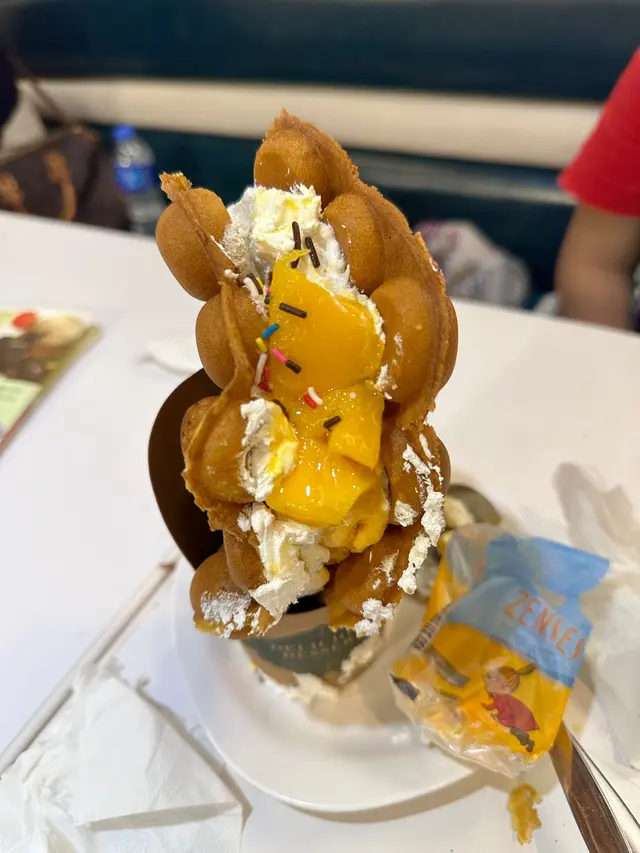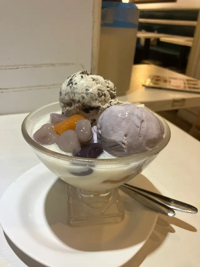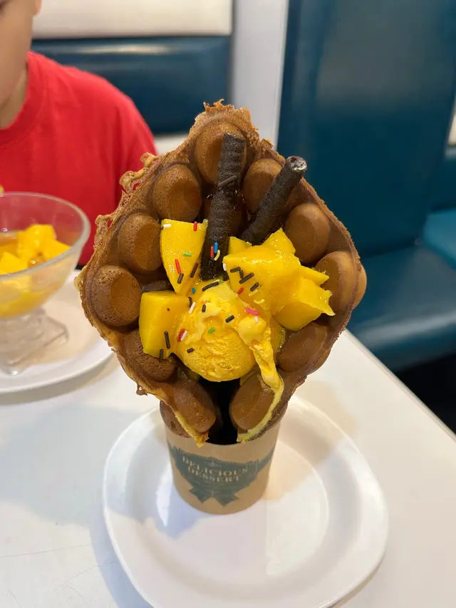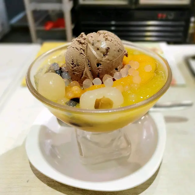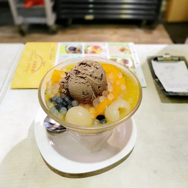 Went to Tsuen Wan with my family to find my cousin and we had late-night dessert tgt..I ordered In Love With City (HKD43), which consisted of chocolate pudding, chocolate ice cream and banana. Sprinkled with chocolate sauce, the pudding was milky and smooth and with rich chocolate flavour, without being overly sweet. The banana added more texture to the dessert. My cousin ordered Mango Bubble Ice Cream Waffle (HKD39). The mango and cream were enveloped by the waffle, and the waffle was quite crunchy. My mom ordered Mini Mochi in Ginger Soup (HKD25), which came with six pieces. My dad ordered Mango Smoothie (HKD35), which was quite refreshing. .We visited here based on some locals' recommendation, when we were lost, trying to find a dessert shop. It stays open till 02:00 am, making it a good spot to hang out late with friends. The shop was slightly noisy though, so we needed to talk louder. …ดูเพิ่มเติม
