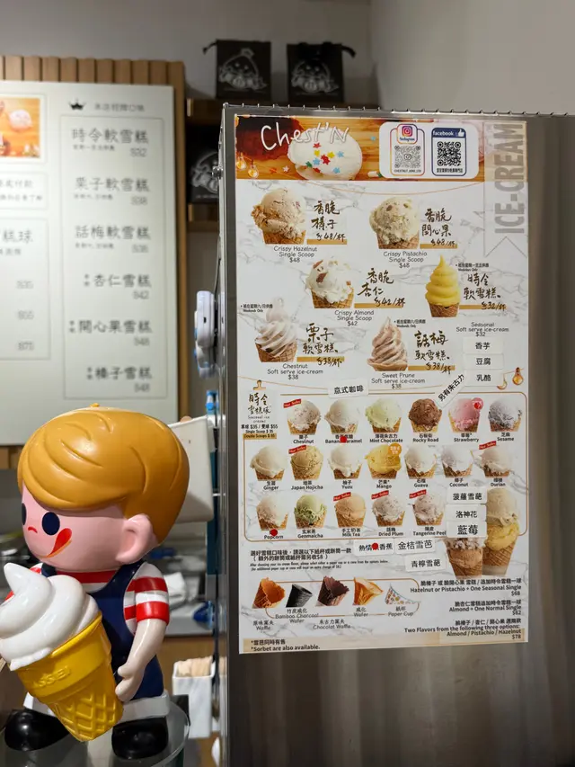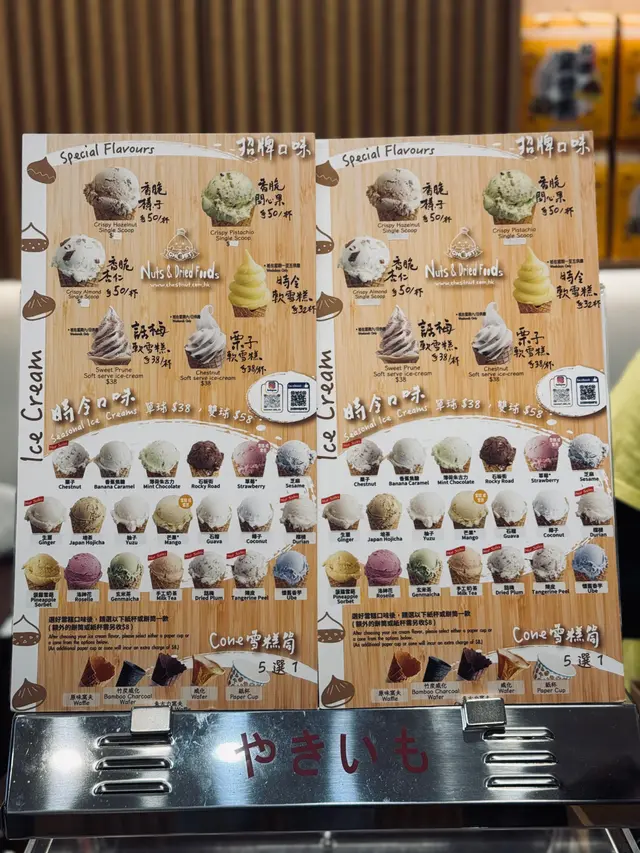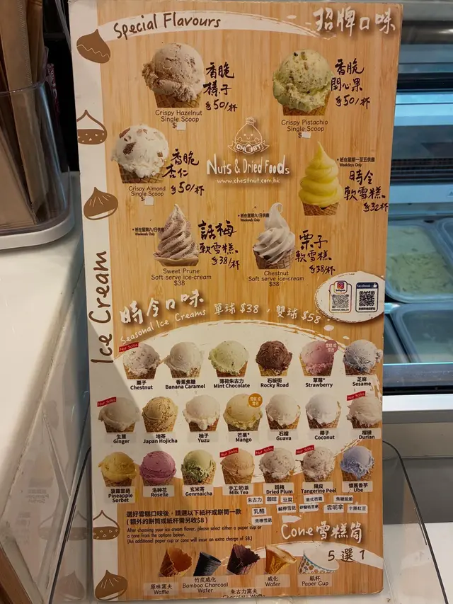 好耐之前已經因為賣雪糕而出名嘅乾果店😂😂未有分店個陣,仲記得自己為左食佢地嘅雪糕,專登搭車入去大埔墟,趕係佢地20:30收舖之前買嚟食🤣🤣生薑栗子雪糕因為我好多味都有食過啦,所以我讓朋友決定想食咩口味,最後佢揀咗生薑同埋栗子呢兩款口味。生薑味濃,仲有少少辣味,但係又唔會因為辣味遮蓋左雪糕嘅甜味,好出色,呢個係比較易融款嘅,所以我平時會留返冬天食😂😂栗子雪糕唔會好甜,每一啖都有栗子顆粒,食到栗子雪糕嘅同時,亦都咬到栗子嗰種粉粉地嘅口感,根本就等於食緊栗子😆😆😆佢地嘅雪糕唔係幼滑質地嘅,反而偏向更像真,即係似原材料味道同埋口感嘅類別。雪糕好大球,我試過叫3球食,超吸引途人目光,聽到佢地好奇究竟邊度買🤣🤣🤣我希望可以食勻晒佢地所有雪糕,但每次都會「唔小心」叫左重覆味道,因為實在太好食😅😅😅仲有佢地連雪糕筒都有好幾款可以揀,可想而知佢地幾想將個雪糕整到最好😉…查看更多