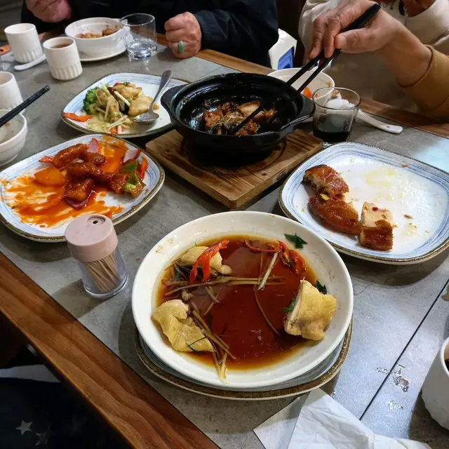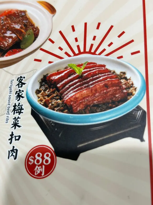 轉角位置看到有一間中式小菜餐廳,看了看餐牌有不少傳統口味的小菜,晚飯時間剛好到,可以入內嚐嚐呢~餐廳用上木糸桌椅,雀鳥吊燈令人感覺温馨,入座後,職員先送上水仙茶,配小菜吃可以解油膩感。職員很友善,主動拿椅子給我們放手袋,我們坐在窗邊位,一邊吃一邊看著街道上,感覺也很寫意。這裏免茶芥和加一,有糖水送贈,價錢比酒樓優惠一點,想吃小菜時也是個不錯的選擇啊!♡家鄉梅菜扣肉$88 例邪惡的傳統小菜梅菜扣肉,層層分明的肉和脂肪,配飯吃一流啊!♡芥末牛柳粒$96 🥢必點🥢有青椒、紅椒、洋蔥,芥末味醬汁很夠,每件牛柳粒和配菜都沾上芥末味醬汁,牛柳粒肉質軟腍入味,醬汁很好下飯呢!♡十里蒜香一字骨$98 🥢必點🥢蒜香味調味剛好,不會有過於味精的感覺,炸得香脆,肉質軟腍,味道香口惹味。♡菌皇濃湯浸時蔬$78菌皇濃湯浸着蔬菜菌類,鮮甜入味。♡美極生炒牛肉飯$78雞蛋、香蔥加些菜和牛肉粒炒成,炒得乾身,飯粒粒粒分明。🥣誠意的還有糖水送贈,當日的糖水是綠豆沙,甜甜的,味道不錯,如果稠一點會更好呢~✖️餐廳全日不設加一服務費、免茶芥 查看更多