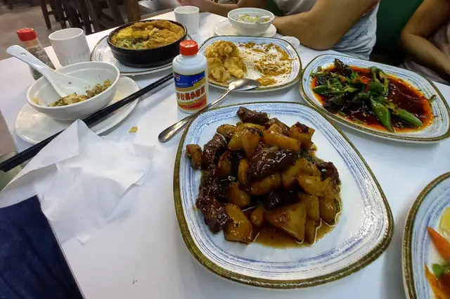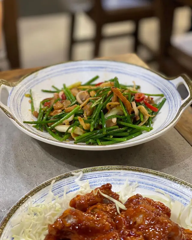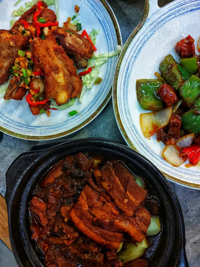 朋友仔好鍾意食小菜,見呢間舖頭係平日梨講都算幾多人,餐牌有好多唔同嘅套餐配搭,價錢都好平民化,所以就揀咗佢試一試。金銀蛋浸時蔬呢個小菜一直都係我嘅蔬菜首選,今日時蔬係小白菜,配上金銀蛋去煮,清清地又唔油,而且又有小小湯飲下😍金黃色嘅炸蒜非常好食皓景話梅骨店員推介,見佢嘅名似係招牌菜,而朋友又好鍾意食肉,所以叫咗個,佢真係外脆內軟,而且酸甜酸甜咁非常開胃,配飯一流。干鍋肥腸鑊氣之選,有少少辣味,配上洋蔥,青椒同埋辣椒爆炒而成,肥腸應該有經過處理,入邊嘅肥膏唔算好多,感覺上冇咁邪惡。總括嚟講都覺得幾抵食,味道都中上,下次會返嚟再食,再試吓其他嘢😃查看更多