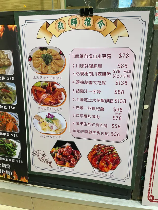 土瓜灣一帶平時多野食到花多眼亂,今晚突然間想食下中菜小炒,見到呢間門口都有好多唔同既特色小菜,一於試下佢先環境都舒適乾淨一坐底 職員已經放左碗例湯俾我地飲完冇口乾口渴,有住家湯feelMenu種類同組合都好多但因為我地今日得2個人,所以就只叫咗三碟小菜食京都肉排 用煲仔上既小菜 一上枱咋咋聲,feel到好有鑊氣啲肉排煮到好淋,肥瘦適中加上酸酸甜甜嘅汁,送飯一流回鍋肉加左少少麻辣醬去炒, 味道同平時出面食既唔一樣,最正係個腩肉同菜都索哂D味而且食落亦冇好油膩黃金海中蝦 蝦球好彈牙,而且個炸粉亦做得好薄,食落冇成口粉而且個黃金比例做得好好,每一隻都包到鹹蛋黃,但又唔會太咸查看更多