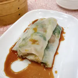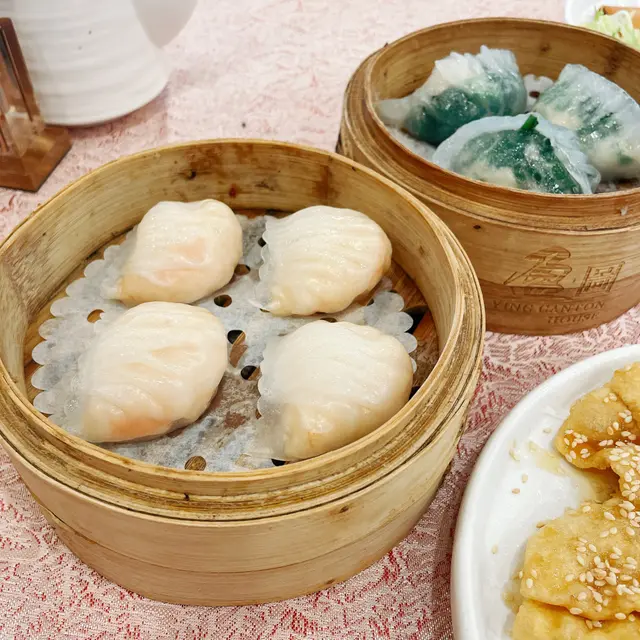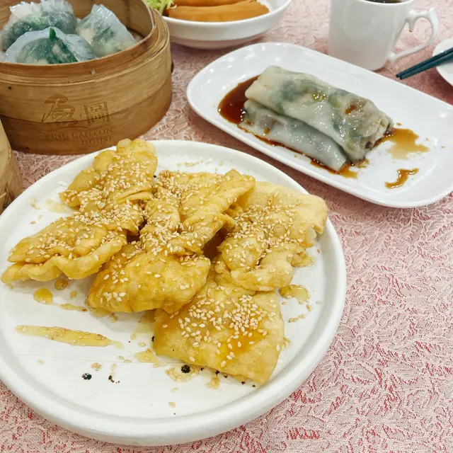 推開玻璃門,成間餐廳俾巨型水晶吊燈照到金閃閃✨,窗邊位望到街景好開揚,我哋四人被安排坐圓枱,枱與枱之間夠闊落唔會逼。冷氣微微送風,頭頂嘅燈光將每籠點心照到油亮亮,蒸氣混住茶香飄過嚟,隔離枱嘅笑聲同碗碟聲混成一片,好有飲茶嘅熱鬧氣氛🍵!鮮蝦菜苗餃 ⭐️⭐️⭐️⭐️ 菠菜苗翠綠到發光🥬,蝦肉比例剛好,菜苗嘅青草味中和咗油膩感,可惜皮邊有少少厚,扣咗半分。 蒜香蝦春卷 ⭐️⭐️⭐️⭐️⭐️ 脆皮嘅「咔嚓」聲勁過癮!蒜粒炸到金黃但唔苦,蝦肉混咗馬蹄粒,熱辣辣爆汁💥,點喼汁仲邪惡~盈圖蝦餃皇 ⭐️⭐️⭐️⭐️⭐️ 皮薄到透光又唔穿,咬落蝦肉「啪」一聲彈牙,仲有少少筍粒增加爽脆,蝦汁鮮甜到黐住喉嚨,真係皇者風範👑!黃沙豬潤腸 ⭐️⭐️⭐️ 腸粉滑溜似綢緞,豬潤薄切夠嫩,但醬油偏甜蓋過咗豬潤香,如果多啲薑絲會更好🐷。 金絲脆麻花 ⭐️⭐️⭐️⭐️ 甜品時段MVP!蜜糖拉絲脆到似玻璃糖🍯,芝麻香攻鼻,可惜得四件唔夠分,要搶住食先過癮😂服務編排夠聰明,店員見我哋拎蛋糕主動問要唔要雪住,上菜節奏似打乒乓波咁快🏓,蒸點同炸物分開上,唔會凍晒。每道點心都睇到師傅手勢,例如春卷摺到似金條,蝦餃摺12紋唔馬虎,傳統中見功夫👨🍳! 總結:人均$200有找,坐得舒服又夠飽,水晶燈下影食物零死角📸,慶生自拍夠光猛!點心水準穩陣,最驚喜係蒜香春卷同蝦餃CP,茶錢$11/位合理。臨走仲見到有包廂客舉杯,下次人多都想試吓~ 🎂🥢…查看更多