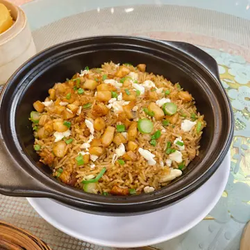 呢間一直喺我to-eat list嘅名店,今日終於專程同男友嚟「朝聖」!餐廳環境光猛開揚,大玻璃窗望到街景,坐卡位夠闊落,仲見到有私人包廂㗎~中午時段人氣旺,枱與枱之間唔逼,傾計都舒服。燈光係暖黃光💡,唔會刺眼,幾啱慢慢嘆茶傾偈。1. 砂鍋鮑魚粒蛋白炒飯 🍚 ⭐️⭐️⭐️⭐️ (4/5) 一上枱就聞到超香鑊氣!🔥 飯粒炒到乾身分明,粒粒金黃,鮑魚粒切得細細粒但咬落有存在感,帶微微鮮味。蛋白嫩滑,撈埋蔥花同雞蛋碎,簡單但好考功夫!砂鍋底仲有少少飯焦脆脆地,好正~係穩穩陣陣嘅經典炒功! 2. 黑金流沙包 🖤⭐️⭐️⭐️⭐️⭐️ (5/5 滿分!) 不得了!真係「流」沙啊!👏 一撕開個烏卒卒嘅包皮,鹹蛋黃流沙好似熔岩咩湧出嚟🌋!包身軟熟帶微甜,流沙餡鹹香濃郁,仲有啲沙沙口感,熱辣辣食真係幸福感爆燈!男友仲影咗十張相先捨得食😂~經典點心做到咁高質,抵讚!3. 鮮蝦菜苗餃 🥟 ⭐️⭐️⭐️⭐️ (4/5) 晶瑩剔透嘅皮包住滿滿餡料!蝦肉爽口彈牙🦐,菜苗(即係豆苗)青翠爽甜,無草腥味。咬落去鮮味同蔬菜汁一齊爆出,蘸少少喼汁更提鮮~皮薄但蒸完唔穿,功夫到位! 4. 醬皇蒸鳳爪 👑 ⭐️⭐️⭐️⭐️ (4/5) 鳳爪蒸到超級腍滑!一啜就骨肉分離~醬汁濃郁帶微甜,豆豉同蒜香好出,仲有少少陳皮香,入味到連骨都想啜!墊底嘅花生都煮到粉糯。係飲茶必點嘅穩陣之選!呢餐真係滿足晒我嘅期待!👫 坐得舒服,自然光透入好醒神☀️。食物冇花巧,但樣樣都喺「經典框架」內做到高水準,尤其流沙包同炒飯嘅功夫真係睇得出師傅手藝💪。服務員姐姐手腳快,收碟斟茶好主動🍵(茶位$12/位+10%服務費)。兩個人食到捧住肚走,默默將呢間列入「穩陣之選」清單!🥰 係會想再試其他小炒嘅!…查看更多