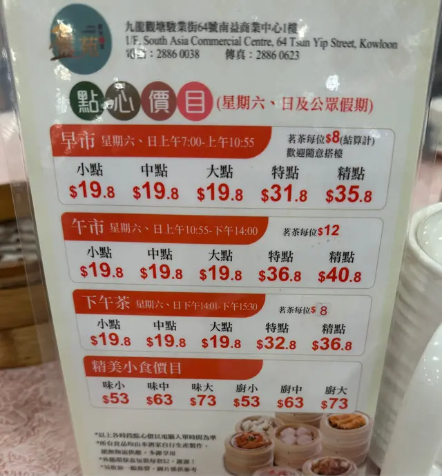 盈苑 (觀塘) 網上訂座享特別優惠兼賺Rice Dollars 網址: https://s.openrice.com/QrbS08e8C00 地址: 香港觀塘駿業街64號南益商業中心1樓 電話: +852 28860038
