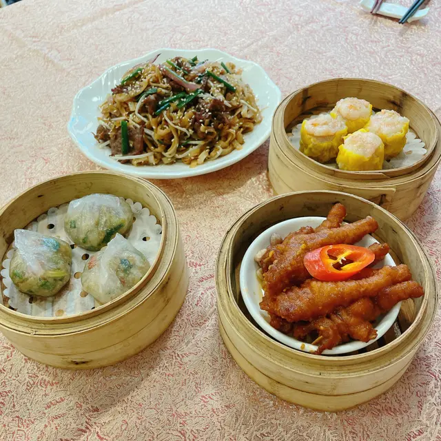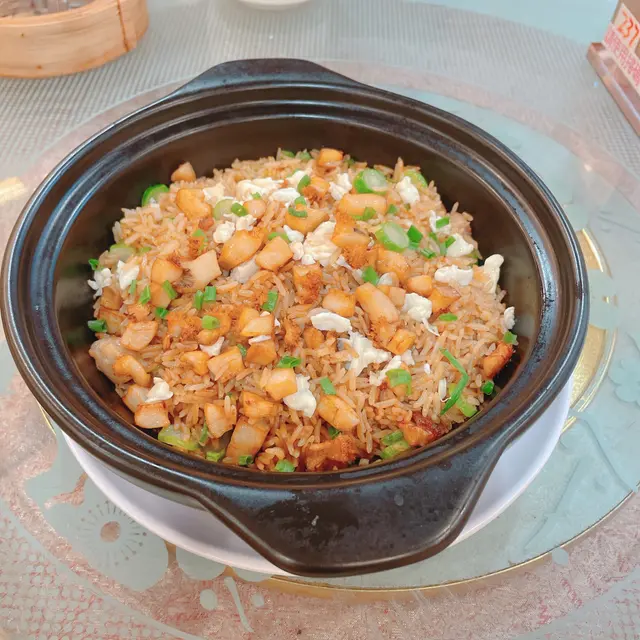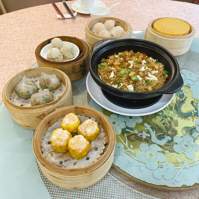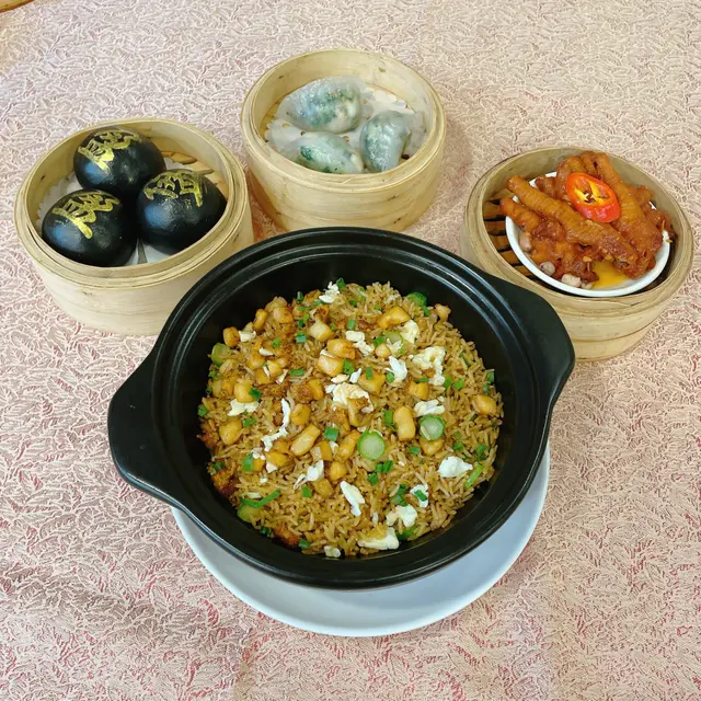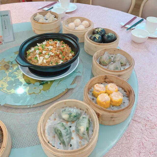 呢間一直喺我to-eat list嘅名店,今日終於專程同男友嚟「朝聖」!餐廳環境光猛開揚,大玻璃窗望到街景,坐卡位夠闊落,仲見到有私人包廂㗎~中午時段人氣旺,枱與枱之間唔逼,傾計都舒服。燈光係暖黃光💡,唔會刺眼,幾啱慢慢嘆茶傾偈。1. 砂鍋鮑魚粒蛋白炒飯 🍚 ⭐️⭐️⭐️⭐️ (4/5) 一上枱就聞到超香鑊氣!🔥 飯粒炒到乾身分明,粒粒金黃,鮑魚粒切得細細粒但咬落有存在感,帶微微鮮味。蛋白嫩滑,撈埋蔥花同雞蛋碎,簡單但好考功夫!砂鍋底仲有少少飯焦脆脆地,好正~係穩穩陣陣嘅經典炒功! 2. 黑金流沙包 🖤⭐️⭐️⭐️⭐️⭐️ (5/5 滿分!) 不得了!真係「流」沙啊!👏 一撕開個烏卒卒嘅包皮,鹹蛋黃流沙好似熔岩咩湧出嚟🌋!包身軟熟帶微甜,流沙餡鹹香濃郁,仲有啲沙沙口感,熱辣辣食真係幸福感爆燈!男友仲影咗十張相先捨得食😂~經典點心做到咁高質,抵讚!3. 鮮蝦菜苗餃 🥟 ⭐️⭐️⭐️⭐️ (4/5) 晶瑩剔透嘅皮包住滿滿餡料!蝦肉爽口彈牙🦐,菜苗(即係豆苗)青翠爽甜,無草腥味。咬落去鮮味同蔬菜汁一齊爆出,蘸少少喼汁更提鮮~皮薄但蒸完唔穿,功夫到位! 4. 醬皇蒸鳳爪 👑 ⭐️⭐️⭐️⭐️ (4/5) 鳳爪蒸到超級腍滑!一啜就骨肉分離~醬汁濃郁帶微甜,豆豉同蒜香好出,仲有少少陳皮香,入味到連骨都想啜!墊底嘅花生都煮到粉糯。係飲茶必點嘅穩陣之選!呢餐真係滿足晒我嘅期待!👫 坐得舒服,自然光透入好醒神☀️。食物冇花巧,但樣樣都喺「經典框架」內做到高水準,尤其流沙包同炒飯嘅功夫真係睇得出師傅手藝💪。服務員姐姐手腳快,收碟斟茶好主動🍵(茶位$12/位+10%服務費)。兩個人食到捧住肚走,默默將呢間列入「穩陣之選」清單!🥰 係會想再試其他小炒嘅!…查看更多