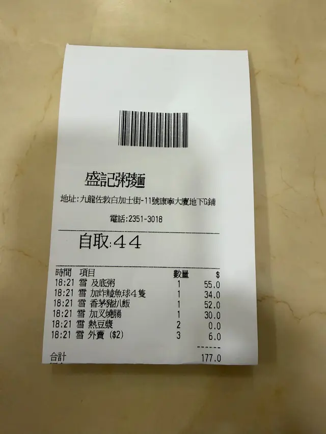 盛記粥麵 (佐敦) 網址: https://s.openrice.com/QrbS0gWS900 地址: 香港佐敦白加士街11號地舖 電話: +852 23513018