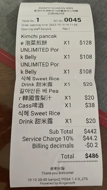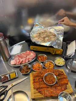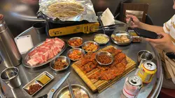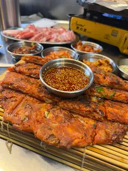 今次去咗食韓燒任食豬腩肉🍖,真係食到停唔到口!啲豬腩肉肥瘦比例啱啱好,燒到外層微脆入面又保持嫩滑😋,一入口就爆出油香味,加埋生菜、蒜片同泡菜一齊夾嚟食,真係完美組合🔥。店員成日都會黎睇下客人有咩需要,火力又穩定,燒得啱啱好,完全唔會燶👍。除咗豬腩肉之外,佢啲頭盤小菜都唔錯🥗,有泡菜、芽菜、醃蘿蔔同紫菜絲,每樣都好開胃,令你未開始燒都已經想食多啲。泡菜pancake 🥞都幾驚喜,外脆內軟,泡菜味唔會太搶,仲帶少少辣味,好香口~配埋啤酒🍺真係一流。飲品方面我叫咗甜米露同雪梨汁🍐,甜米露好清甜又帶少少米香,飲落去好解膩;雪梨汁就冰冰涼涼,啱晒燒肉之後飲一啖降火🔥。整體嚟講,呢間韓燒CP值幾高💰,任食豬腩肉真係夠爽,食材新鮮又唔馬虎。地方乾淨、環境舒服,有啲韓風氣氛🇰🇷。無論係同朋友聚會定拍拖都好啱,食完真係滿足到唔得了~🥰✨…查看更多