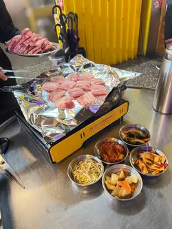 韓國Oppa打理 + 餐前小食任食!喺北角掘到間超抵食嘅韓國燒烤店「盤浦」!由韓國人親自打理,味道絕對正宗👍🏻 最吸引係佢嘅「Pork belly Unlimited」任食,只需$108/位,啱晒一班食肉獸嚟放肆!我哋今次試咗單點,一樣驚喜滿滿:🥩 Beef Rib Finger ($108) - 油花均勻,肉味香濃!🥩 Pork Short Rib ($108) - 醃得非常入味,口感軟嫩!🐮 Beef Loin ($99) - 性價比之王,肉質一點都唔馬虎!另外必點佢哋嘅韓式煎餅,我揀咗蝦煎餅 ($158),超足料!煎到金香酥脆,每一啖都食到爽口彈牙嘅大蝦,沾上特製醬汁,鮮味更加突出!店員服務好,會不時幫手換烤盤,環境舒服。由餐前小食到主菜都充滿韓風,絕對會encore!…查看更多