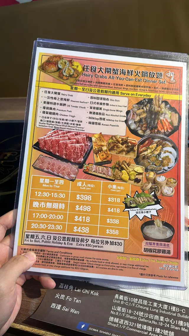 呢次同公司嚟荔枝角嘅相馬日式火鍋聚會,其實之前已經喺佢哋另一間分店試過,大家食得好開心,出品又好有質素,所以推薦咗嚟呢度。呢間分店環境開揚,裝潢帶點日式簡約風,入座之後有種好輕鬆嘅感覺,啱晒我哋一班人一邊食一邊傾偈。呢次我哋揀咗佢哋嘅大闸蟹海鮮火鍋放題套餐,可以無限追加海鮮,絕對係一個超抵玩嘅選擇。尤其係大闸蟹,呢個係季節限定供應,蟹膏多到溢出嚟,蟹肉結實,煮喺火鍋入面完全吸收咗湯底嘅鮮味,每啖都係濃郁嘅海鮮味。另外,佢哋嘅極上豪華蒸海鮮都係一大亮點,有蝦、帶子、螃蟹等海鮮,蒸得啱啱好,唔會太老,保持住海鮮嘅原汁原味,好新鮮。呢道菜唔需要加多餘嘅調味料,已經非常美味。再講下佢哋嘅豪華惹味海鮮雞煲,湯底係用雞湯同海鮮熬煮,味道濃郁得嚟唔會太鹹,裏面啲雞肉嫩滑,搭配啲海鮮一齊食真係冇得輸,食完之後仲想再添多一煲。呢度嘅日式串烧炸物都有唔少特色,最特別嘅要數燒金茹肥牛卷,金茹爽口而無水分,配埋包住佢嘅肥牛,兩者嘅口感完美結合,肥牛嘅油香同金茹嘅清甜互相平衡,好有層次,食完真係好滿足。特別要提下燒菠蘿,燒到微焦之後甜味加倍,食落口感又有層次,好適合用嚟中和食咗咁多肉類之後嘅油膩感。總結嚟講,呢度嘅出品同服務都保持咗一貫嘅高水準,特別適合聚會,尤其係鍾意海鮮嘅朋友,一定唔可以錯過呢間店!…查看更多