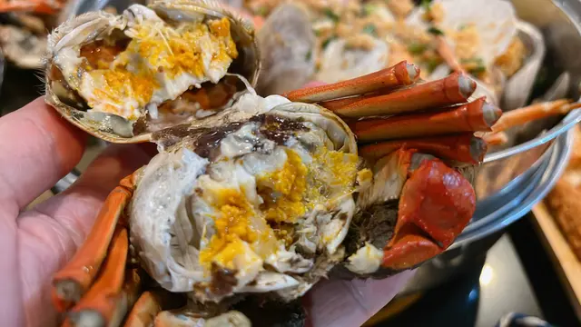 平時一隻大閘蟹平得來都$70,所以梗係要去放題先係最回本,餐廳除咗大閘蟹之外,仲可以同時任食雞煲、海鮮蒸鍋、火鍋放題、雞翼放題、炸物同串燒!呢個質素呢個價錢,所以更加要留港消費,支持一下!!!任食嘅海鮮有:鮑魚,大蝦,貴妃蚌,帶子,廣島蠔同扇貝等等,一路食蒸海鮮,一路食大閘蟹,個咀好忙,隻手好忙,但係個肚就非常滿足!其實都唔需要講太多,睇相就已經可以睇到啲蟹嘅質素,真係爆曬膏🦀🦀🦀🦀雖然前幾日先食完,但係又已經心郁郁想book下一次!…查看更多