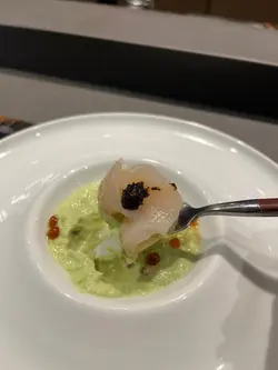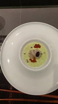 元朗成日都有好多隱世餐廳,今次同家人去這間位於元朗的隱世高質鐵板燒餐廳,鐵板燒由廚師發辦,每一品都好有驚喜!😆 餐廳有吧枱可以近距離觀察廚師準備食物,十分享受!🤩 餐廳裝潢走日式木系風格,面積不算太大,但環境舒適,食物方面都十分高質!😎🍱「睦月」二人前晚市套餐 ($1960/2位)🥣枝豆凍湯法式凍湯用上枝豆製作而成,凍湯上放上刺身級帆立貝和黑松露醬,搭配自家醃製的三文魚籽,咸香又帶點清新,多重享受!☺️🦪日本生蠔生蠔鮮甜肥美,帶有淡淡的海水味,搭配上柚子啫喱一起吃,甜甜酸酸又清新!☺️🐟吞拿魚腦天腦天是吞拿魚頭頂附近的稀有部位,產量極少,每條魚僅能取出約200克的腦天肉。油脂比例接近中腹,肉質彈性,內層柔軟綿密,師傅用火槍輕輕火炙,濃郁魚油香,入口即化,師傅在腦天上灑上用鐵板烘烤過的脆脆的巴馬臣芝士碎,令腦天增加口感,多一份鹹香味道!🤩🦪北海道帆立貝帆立貝用鐵板輕輕煎香,厚身飽滿,鮮嫩香甜!底層搭配用上松葉蟹肉及蟹膏煮成的醬汁,更加提鮮!😋🦪南非鮑魚活鮑魚好新鮮,爽彈鮮味!師傅會切走鮑魚多餘的部份-鮑魚嘴、內臟及外殼,非常細心!配上鮑魚肝醬汁一起吃,口感滑順,味道甘香!👍🏻🐟季節燒魚師傅先將秋刀魚放在米紙上炸,然後再用火槍燙一燙魚的表皮,令秋刀魚更增加魚油香,再加上自家醃製的三文魚籽和芽蔥,米紙超級香脆,口感豐富,更添風味!😍🦞龍蝦由法國空運的藍龍蝦,超級新鮮生猛,🤩 肉質爽口彈牙,搭配濃郁的海膽醬一起吃,全部醬汁都比我食晒,一滴不漏!🤣😋🦞龍蝦鉗藍龍蝦師傅已經拆了肉,好貼心☺️,啖啖肉!再拌以蟹膏一起吃,超級濃郁入味!🤤🐮厚燒宮崎和牛降霜油花分佈均勻,入口即化,肉質軟腍,煎至外微焦,肉質粉嫩,配上三款調味伴碟,包括自製XO醬、即磨山葵、鹽漬昆布,能帶出和牛不同的風味及層次感!3粒唔係好夠喉🤭 如果有多幾粒就好啦~😝🍲炒飯用鐵板炒的櫻花蝦炒飯,色香味俱全,飯粒粒分明,加入大量櫻花蝦、龍蝦膏、蘭王蛋、日本煙肉、白飯魚、洋蔥粒、紅蘿蔔粒和香蔥粒,材料非常豐富,為炒飯帶來了豐富的口感!😋🫕時令湯湯用了龍蝦殼和立魚熬成,非常鮮甜,非常暖胃又滿足!☺️🍨甜品自家製芝士雪葩,芝士味香滑濃郁,再配上師傅即場香煎的焦糖牛油多士,香脆又蜜甜,好滋味!為一餐畫上完美的句號!🥰…查看更多